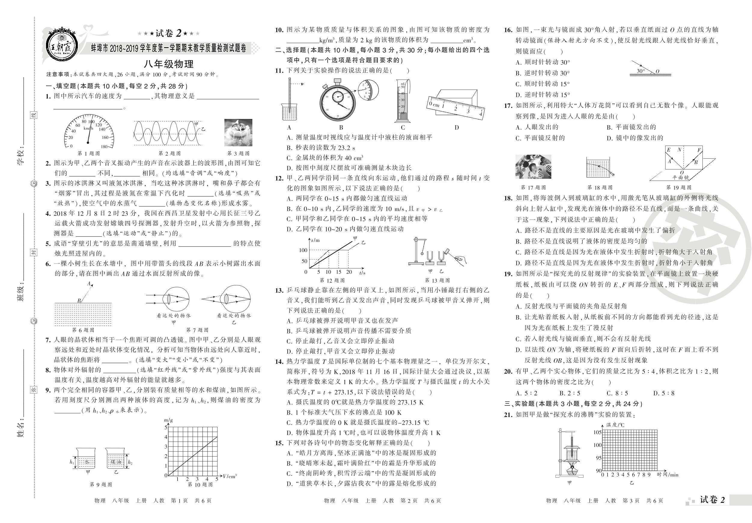 2018-2019学年第一学期蚌埠市八年级物理试卷(人教版)【2】
