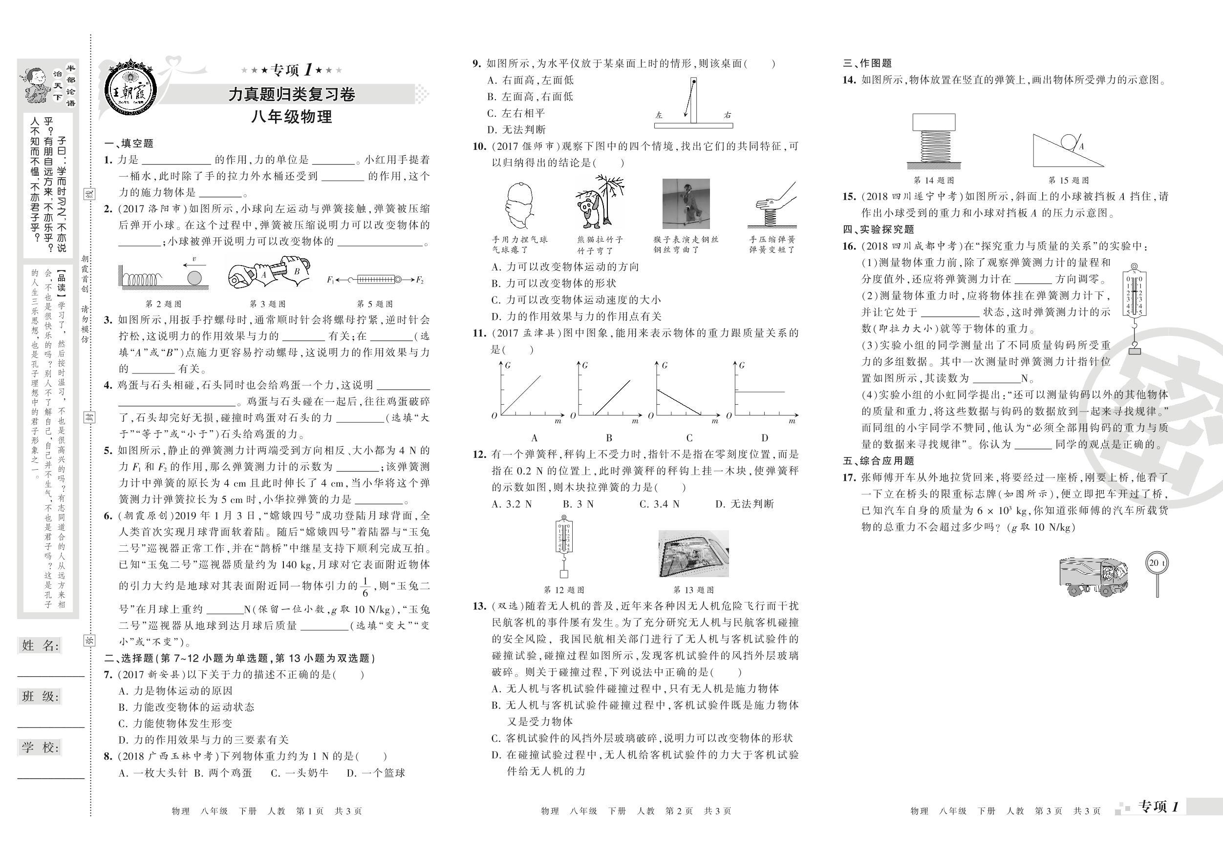 王朝霞期末专项卷——力真题归类复习、运动和力真题归类复习八年级下册物理(人教版)_R210810171343【0】