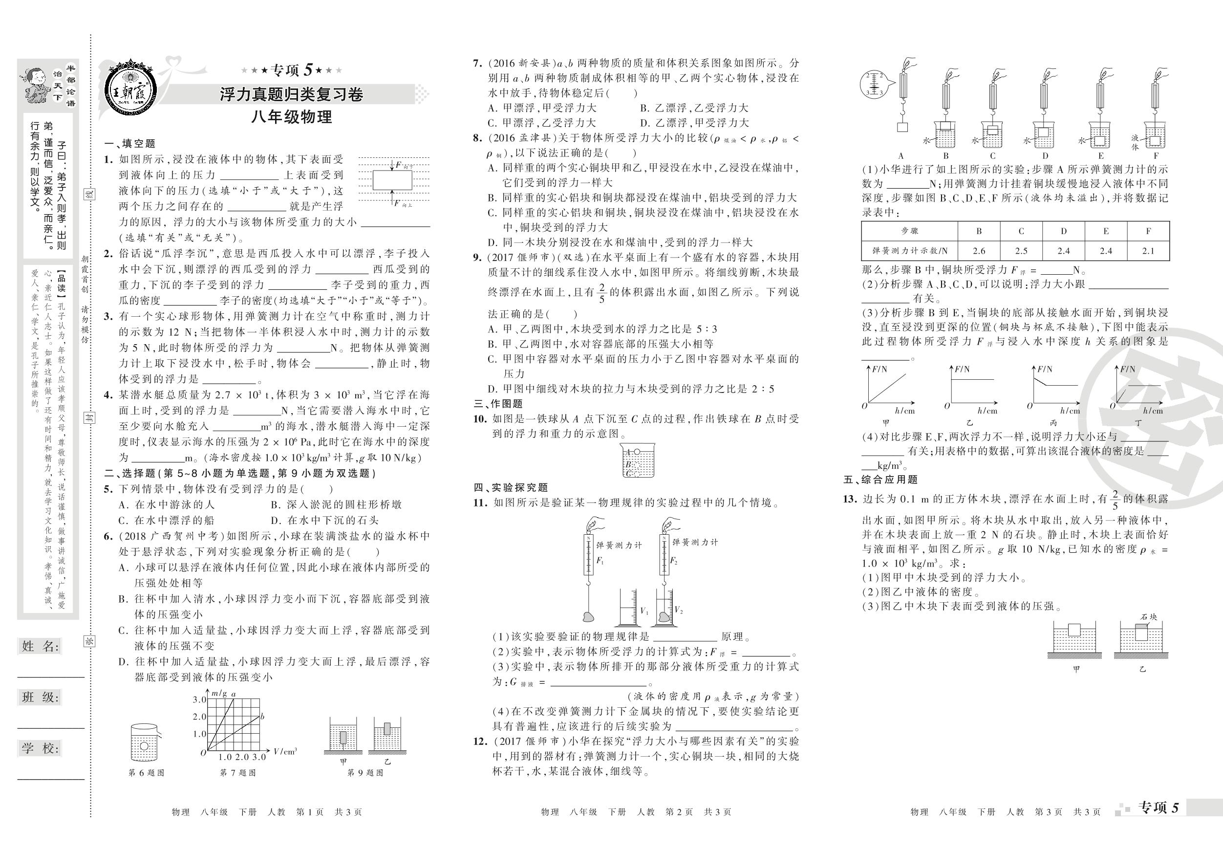 王朝霞期末专项卷——浮力真题归类复习、功和机械能真题归类复习八年级下册物理(人教版)_R210810171359【0】