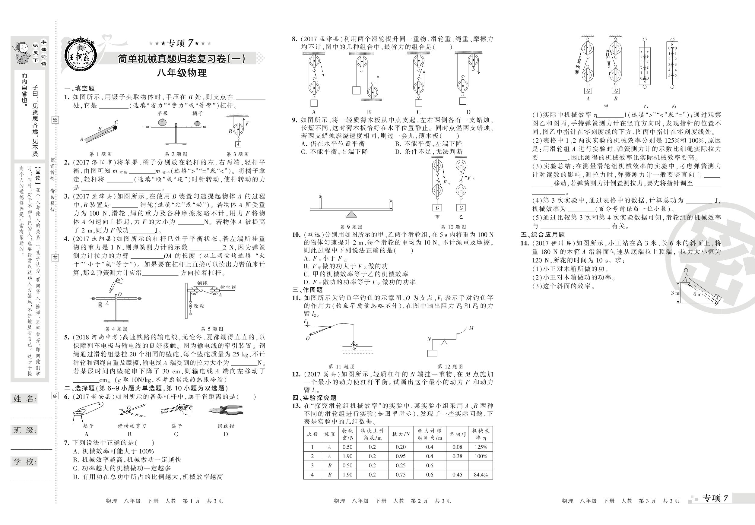王朝霞期末专项卷——简单机械真题归类复习(一)、简单机械真题归类复习(二)八年级下册物理(人教版)_R210810171407【0】