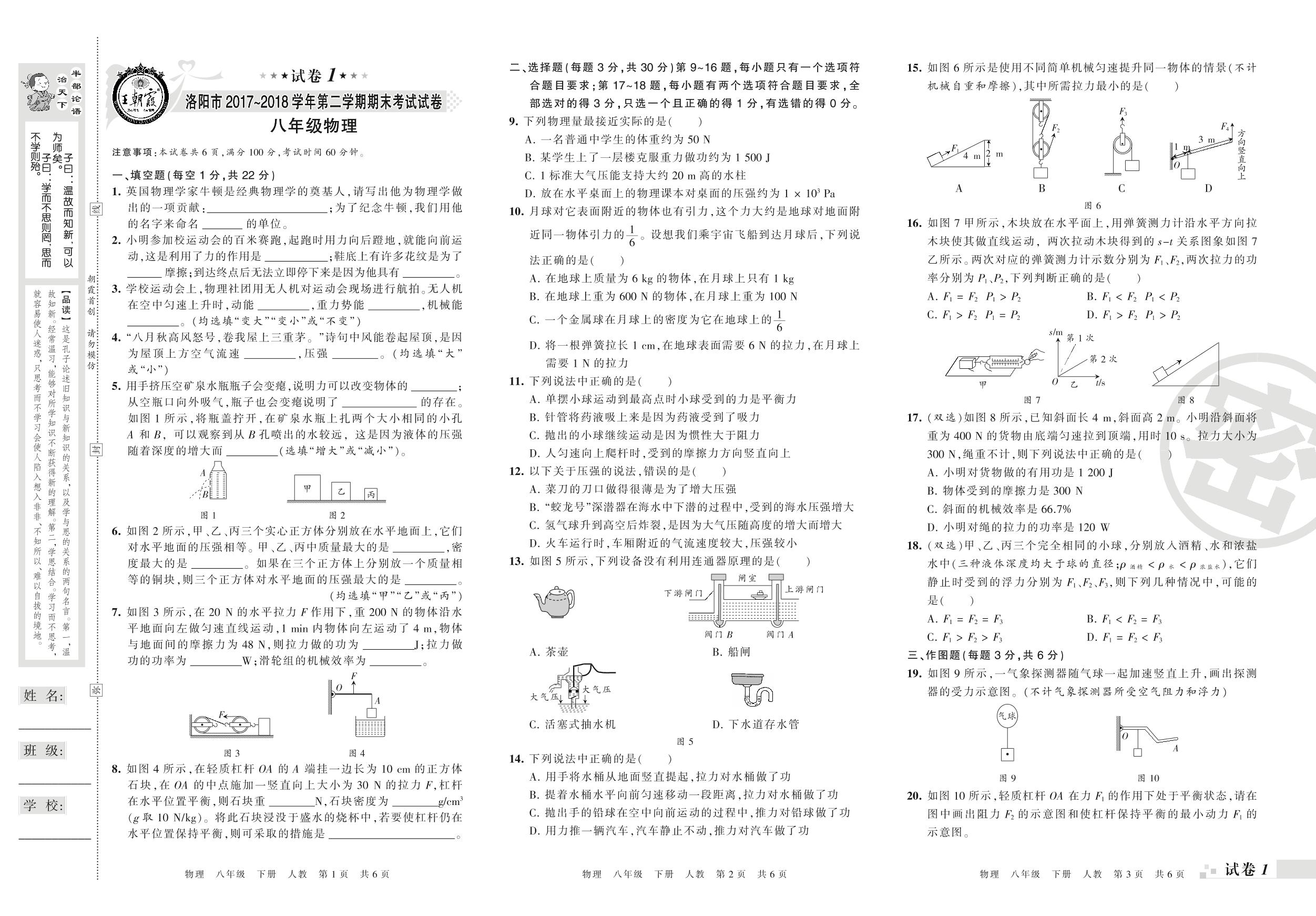 2017-2018学年第二学期洛阳市八年级物理试卷(人教版)【1】