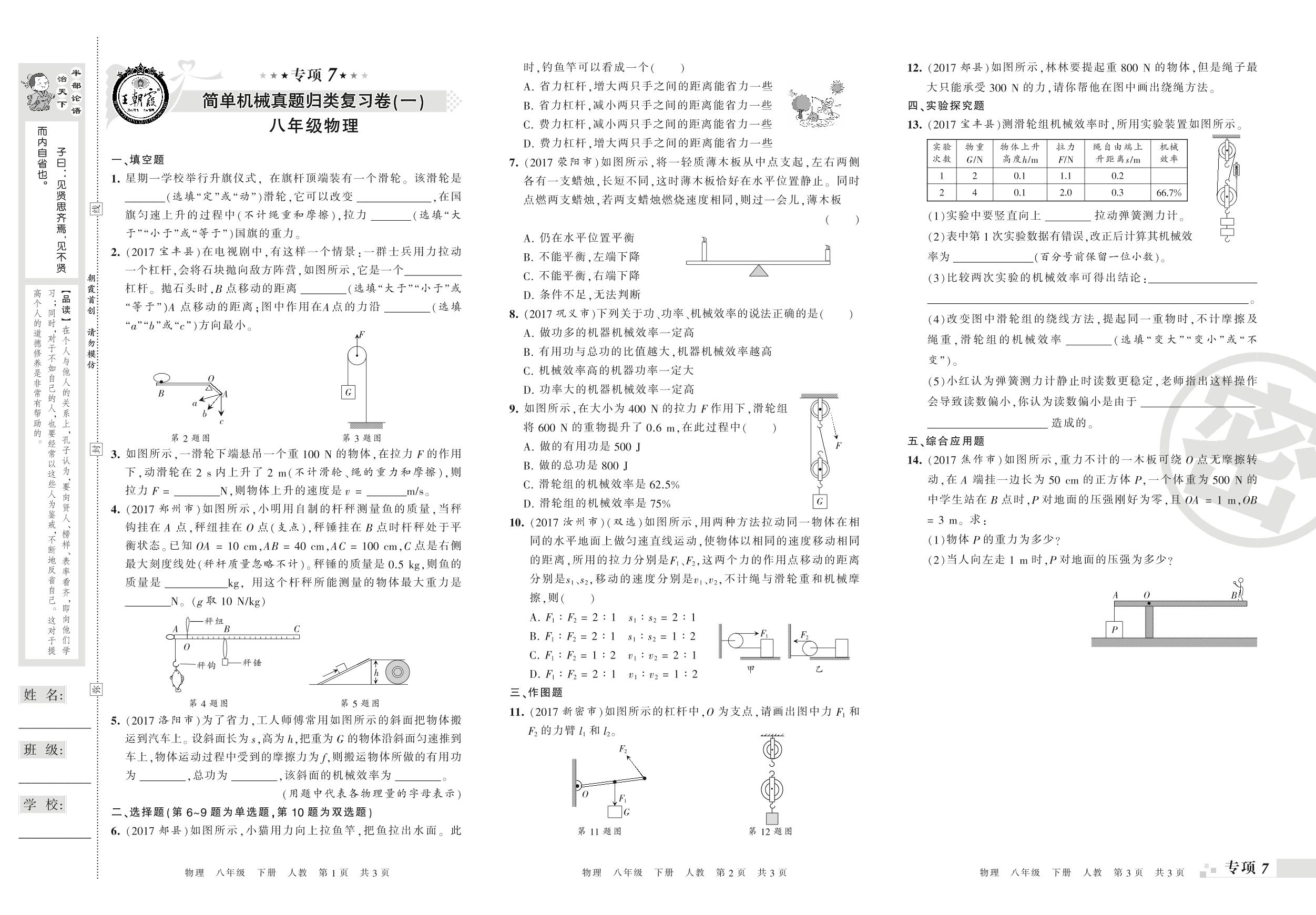 王朝霞期末专项卷——简单机械真题归类复习(一)、简单机械真题归类复习(二)八年级下册物理(人教版)_R210810171555【0】