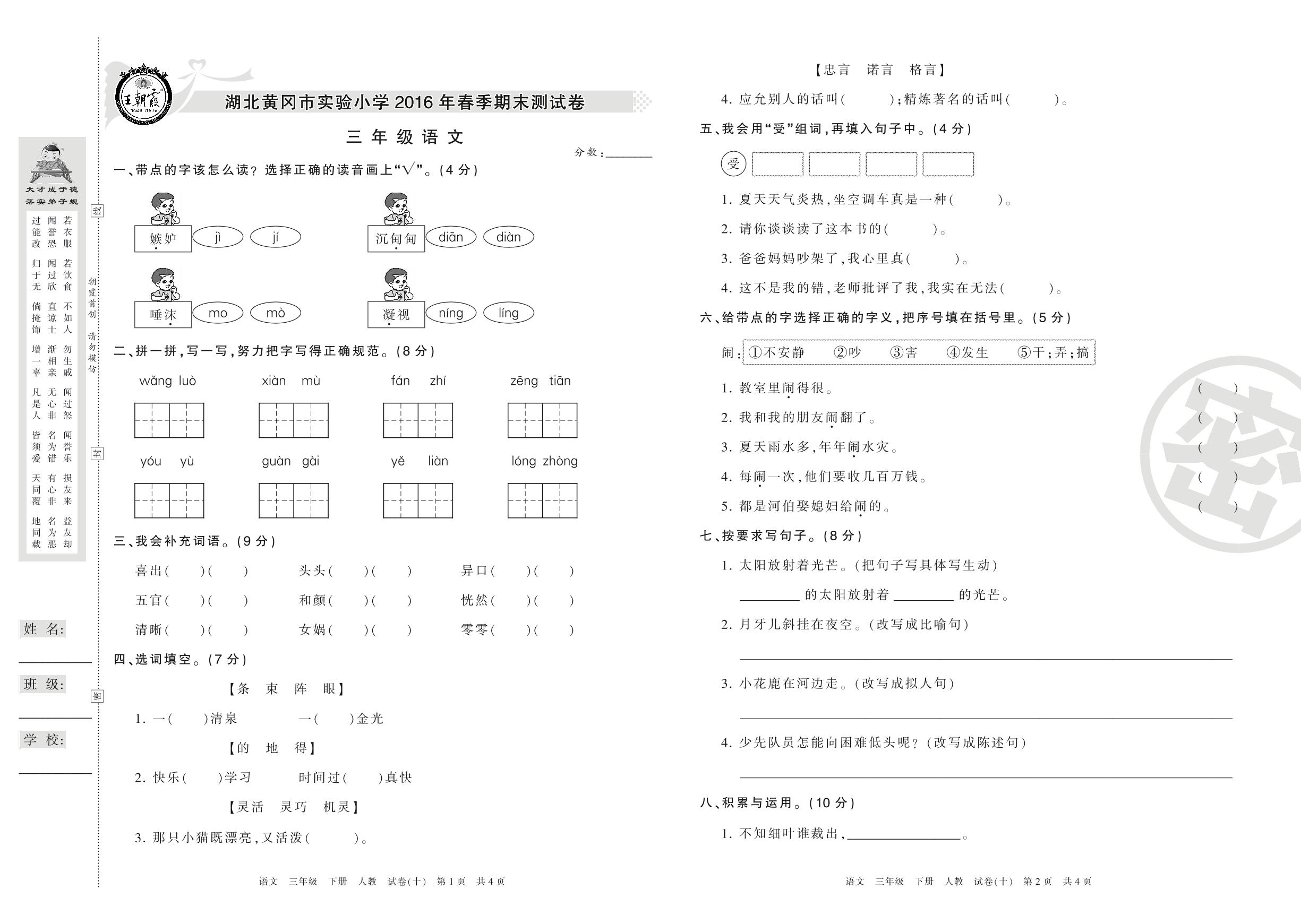 湖北黄冈实验小学三年级下册语文(人教版)【10】