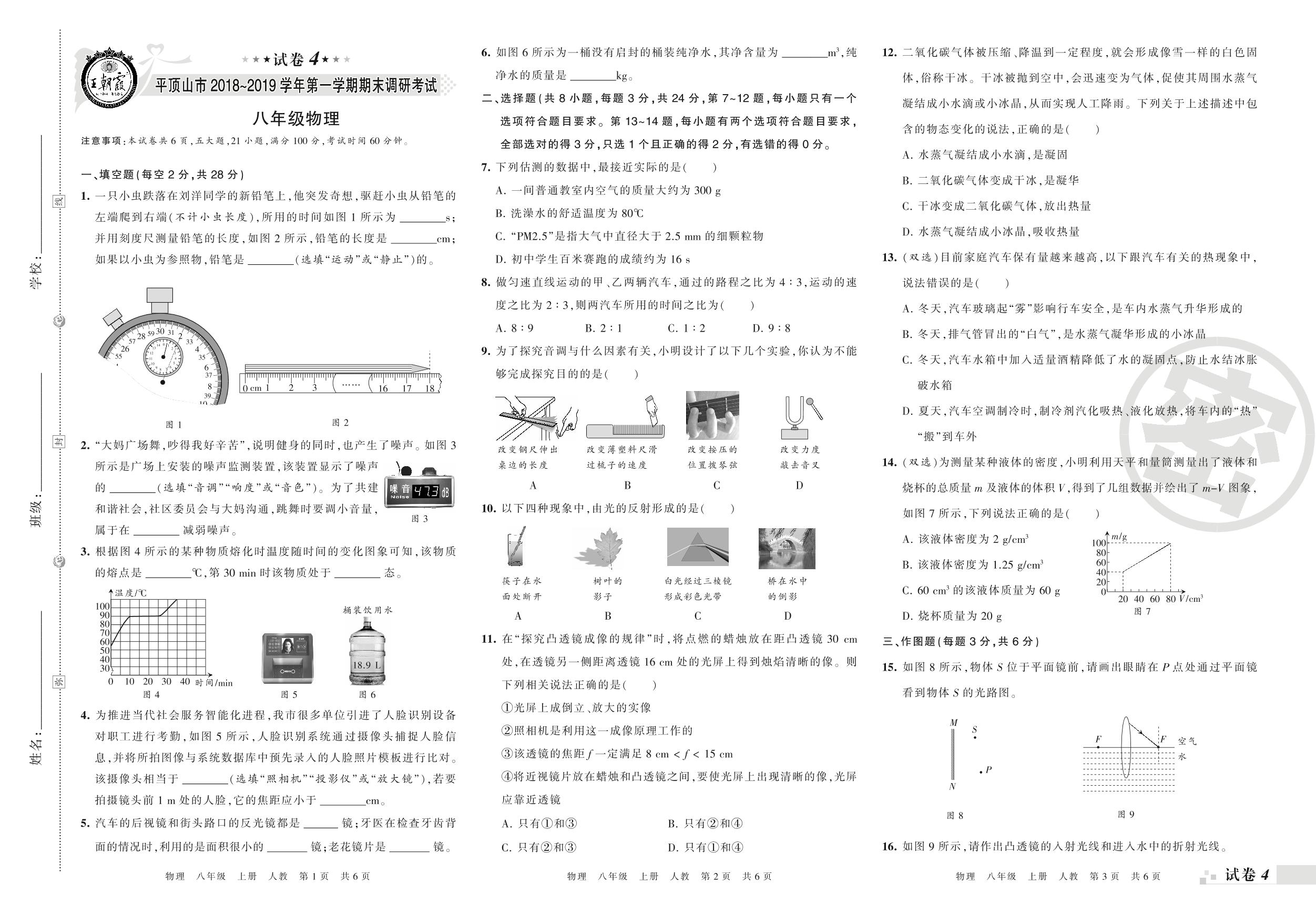 2018-2019学年第一学期平顶山市八年级物理试卷(人教版)【4】