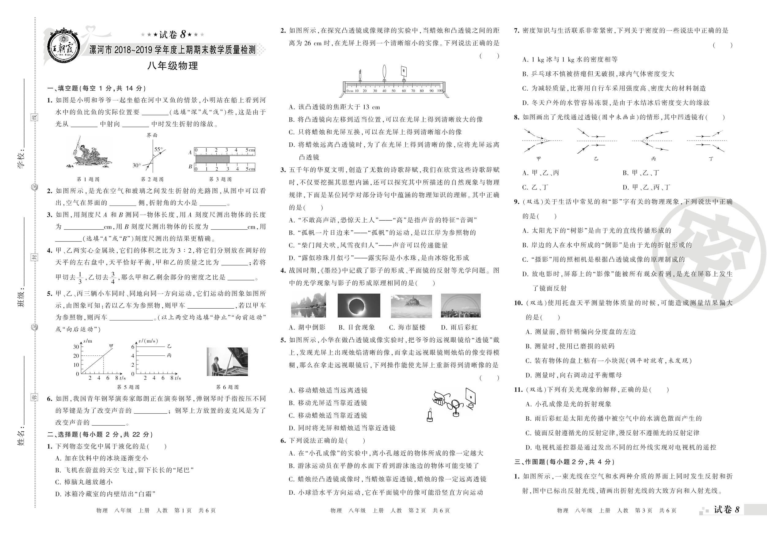 2018-2019学年第一学期漯河市八年级物理试卷(人教版)【8】