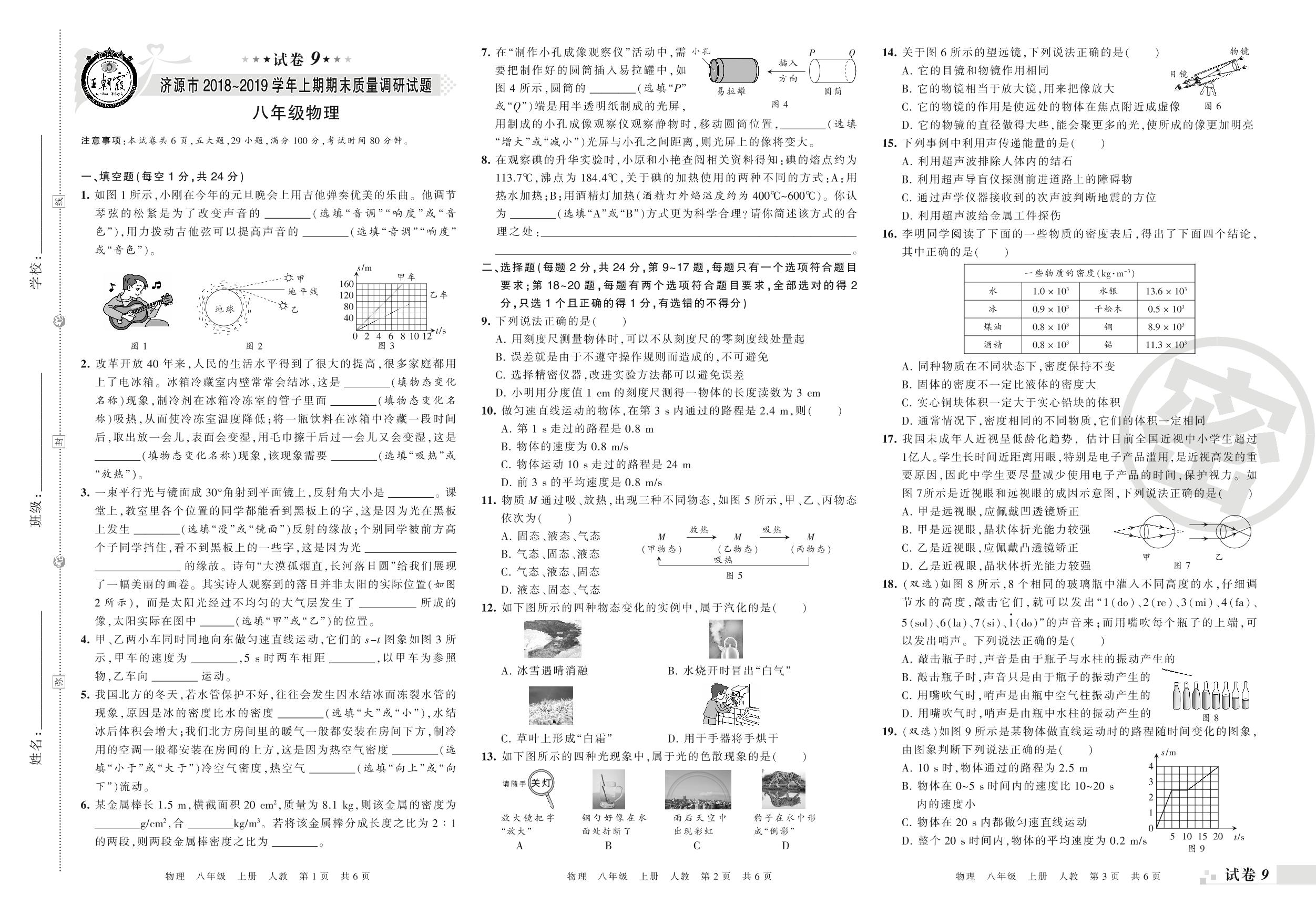 2018-2019学年第一学期济源市八年级物理试卷(人教版)【9】