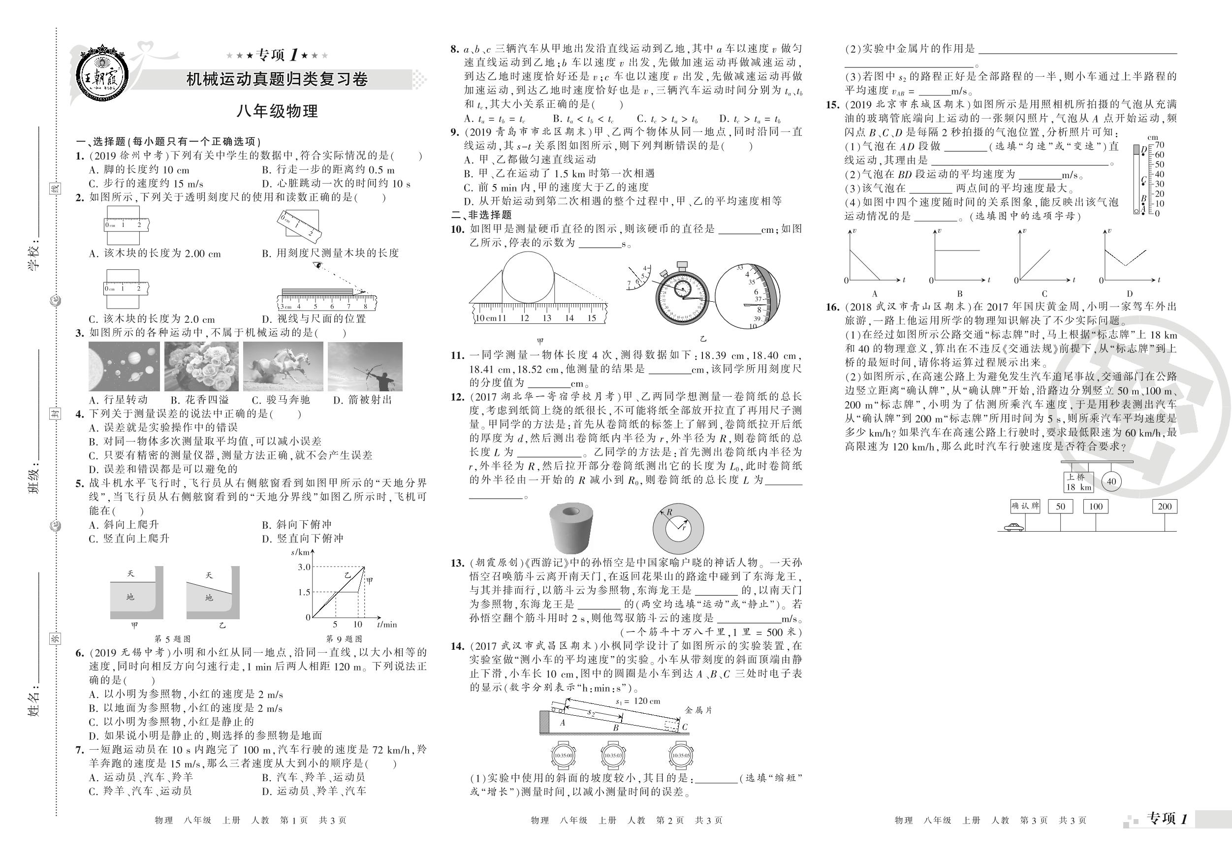王朝霞期末专项卷——机械运动、声现象真题归类复习八年级上册物理(人教版)_R210810171845【0】