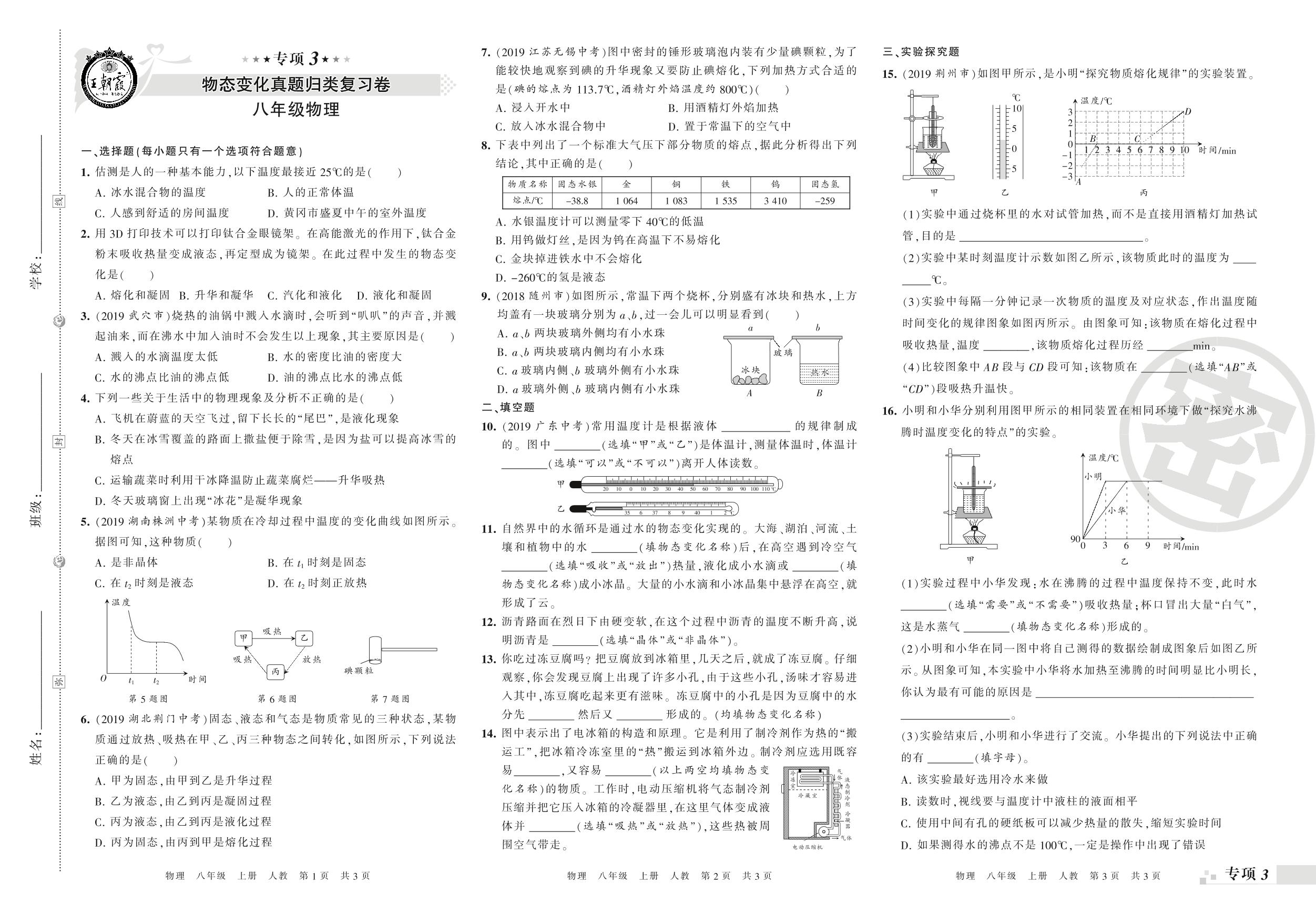王朝霞期末专项卷——物态变化、光现象真题归类复习八年级上册物理(人教版)_R210810172205【0】