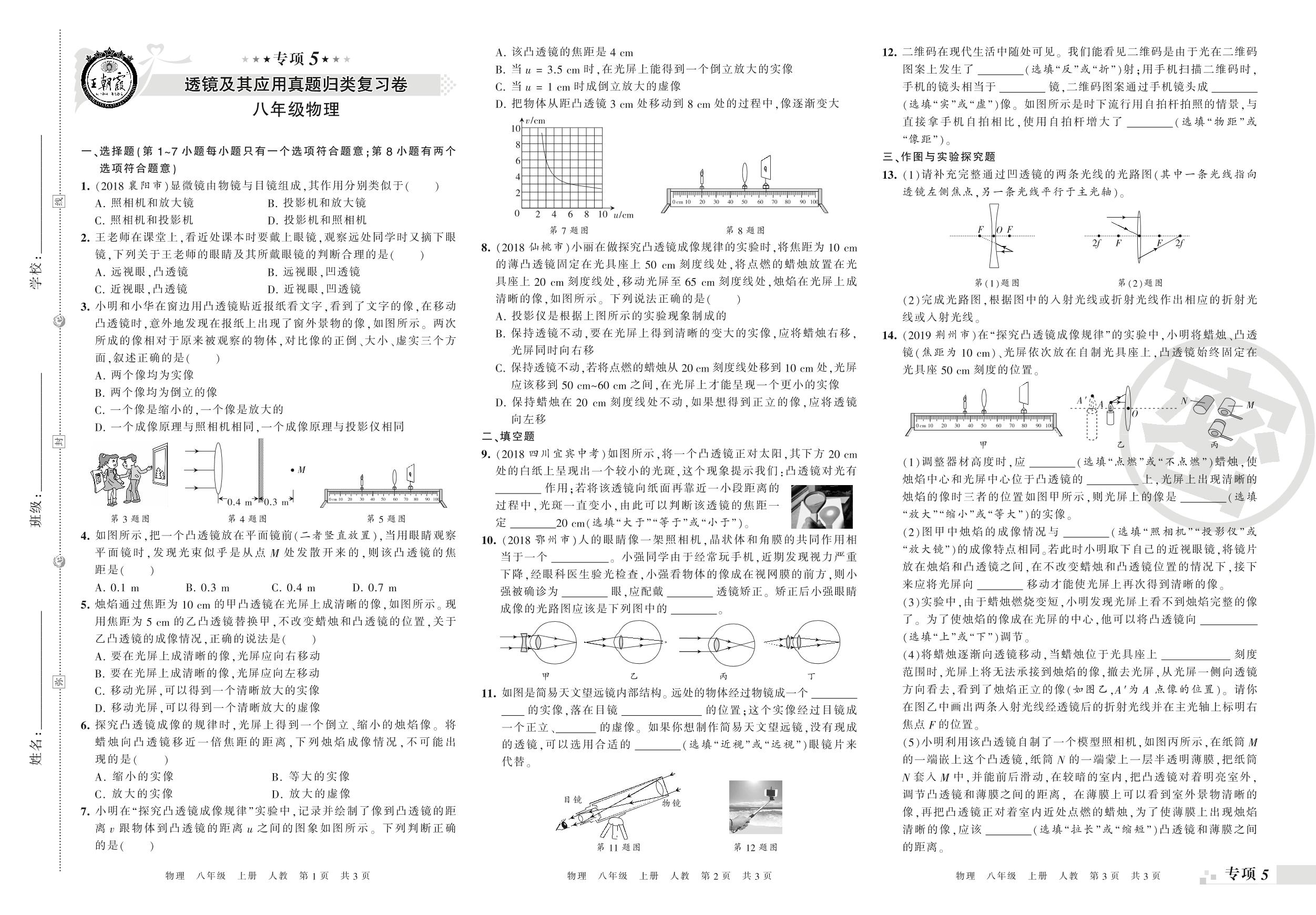 王朝霞期末专项卷——透镜及其应用、质量与密度真题归类复习八年级上册物理(人教版)_R210810172212【0】