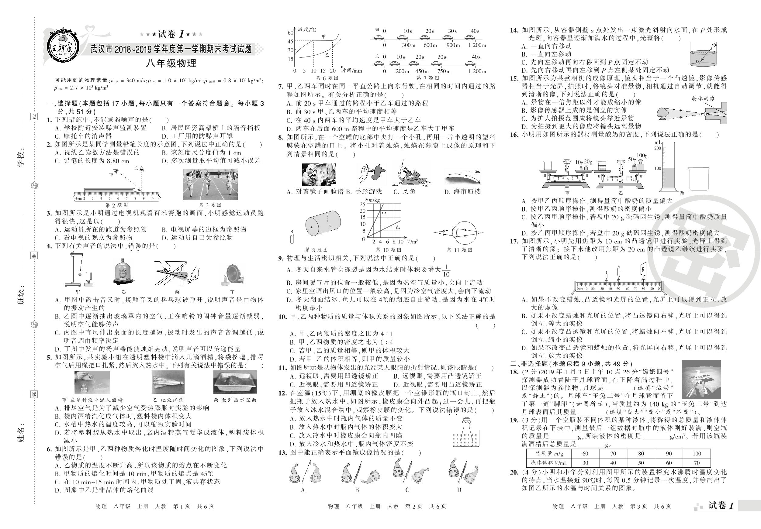 2018-2019学年第一学期武汉市八年级物理试卷(人教版)【1】
