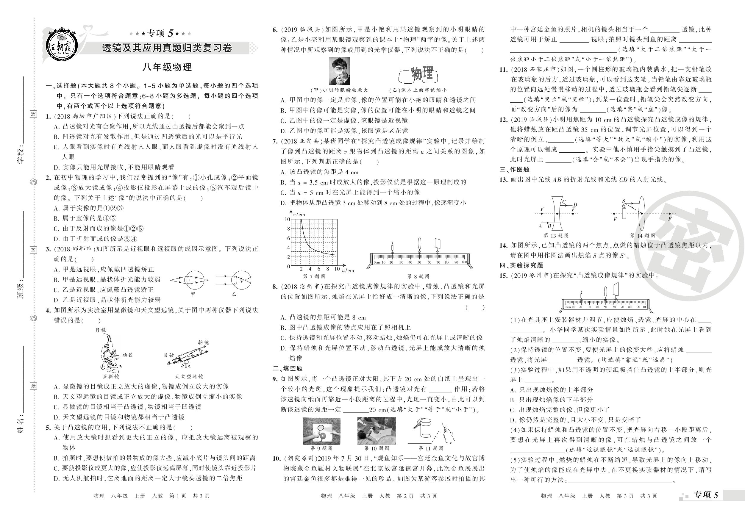 王朝霞期末专项卷——透镜及其应用、质量与密度真题归类复习八年级上册物理(人教版)_R210810172333【0】