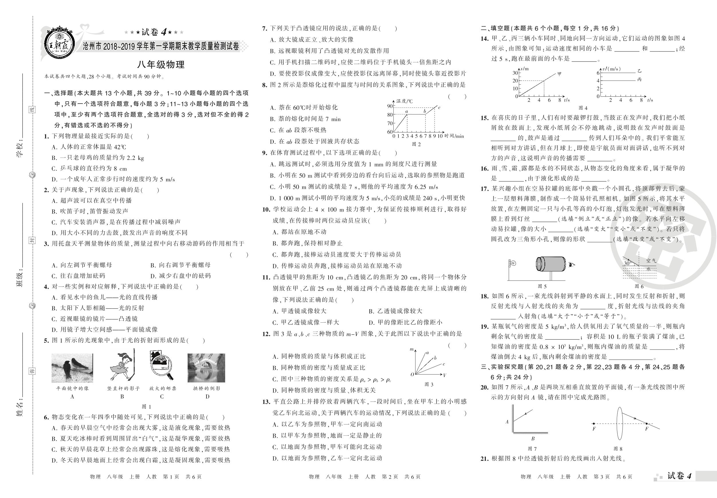 2018-2019学年第一学期沧州市八年级物理试卷(人教版)【4】