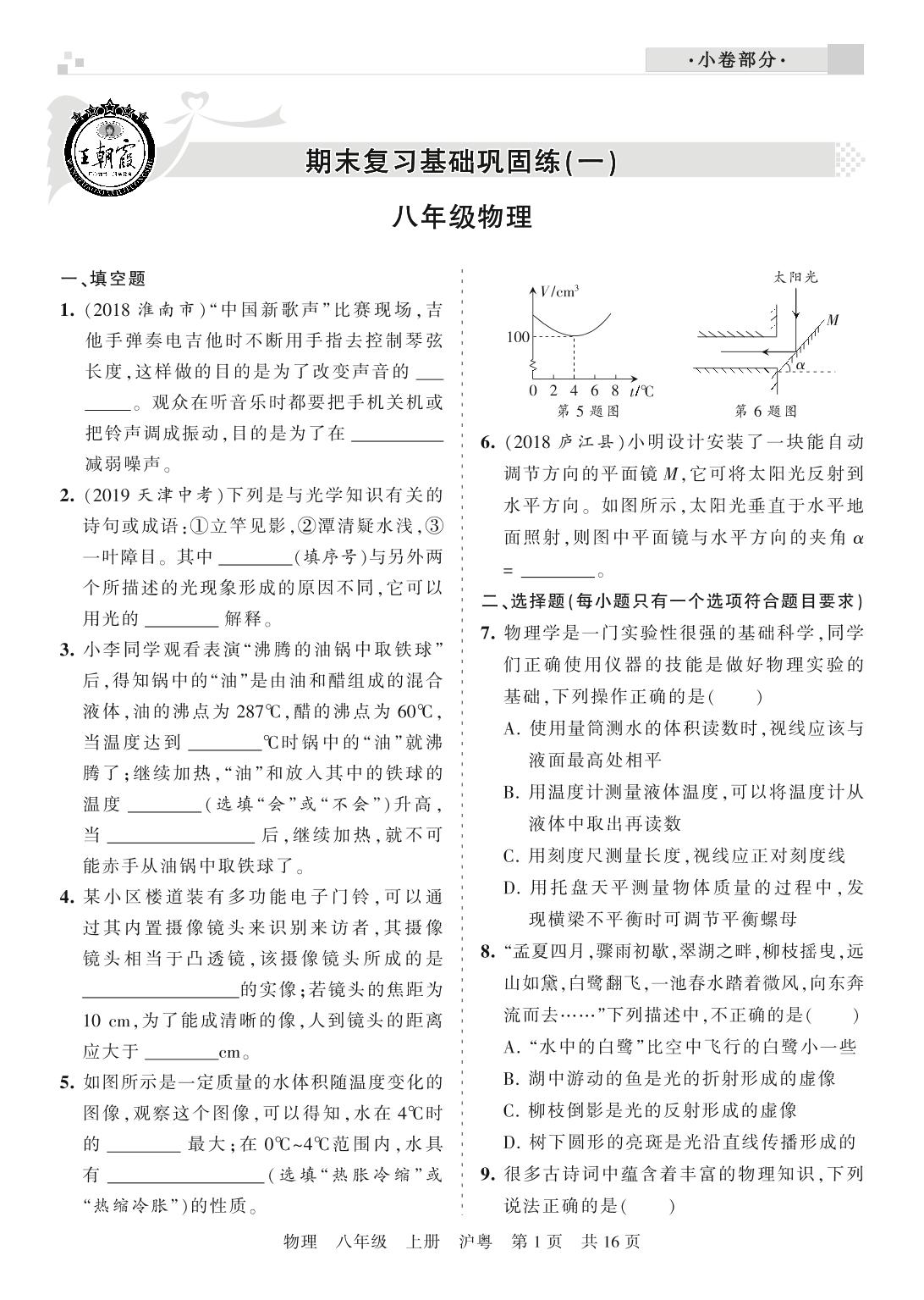王朝霞期末小卷——期末复习基础巩固练八年级上册物理(沪粤版)【0】