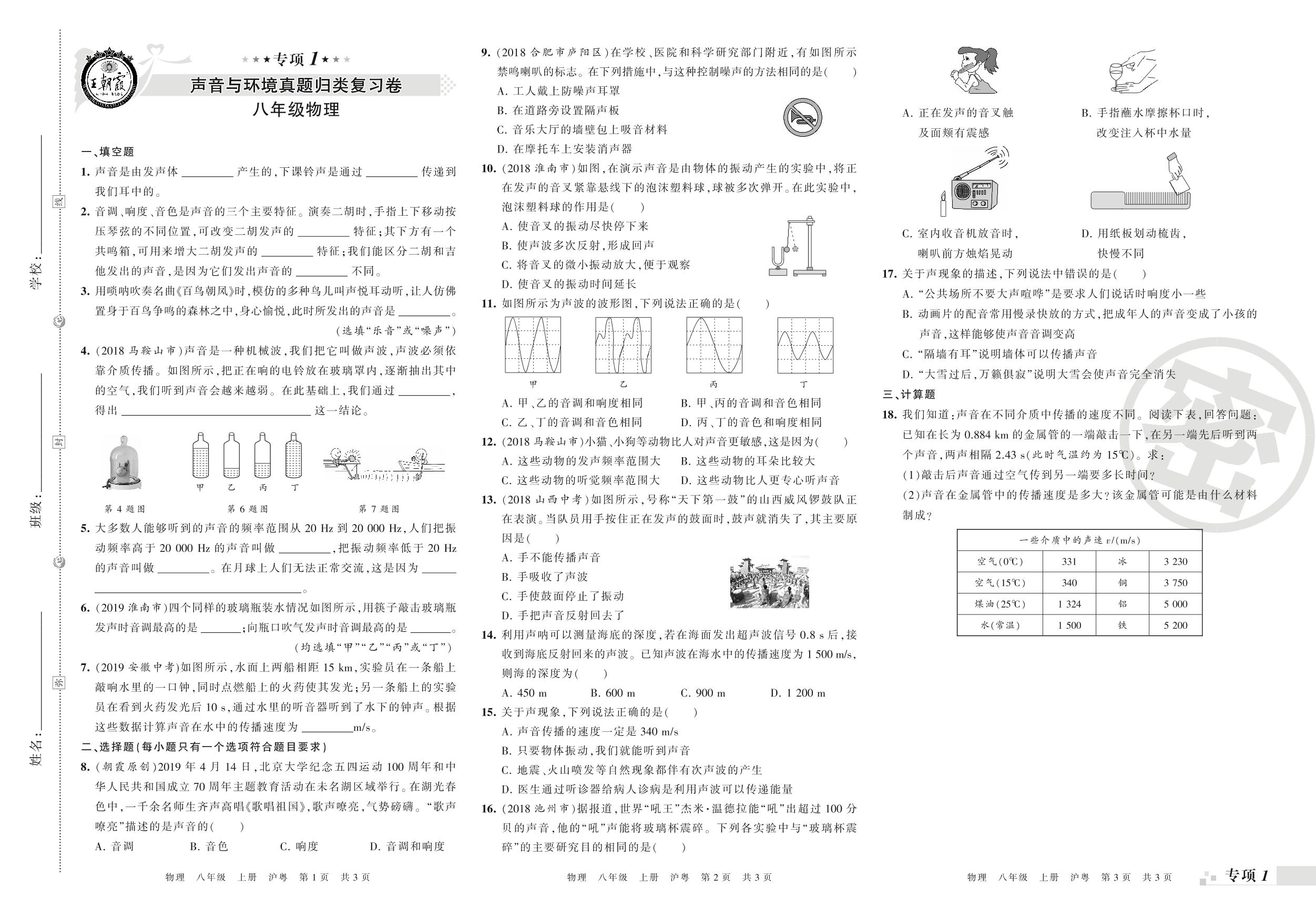 王朝霞期末专项卷——声音与环境、光现象真题归类复习八年级上册物理(沪粤版)【0】