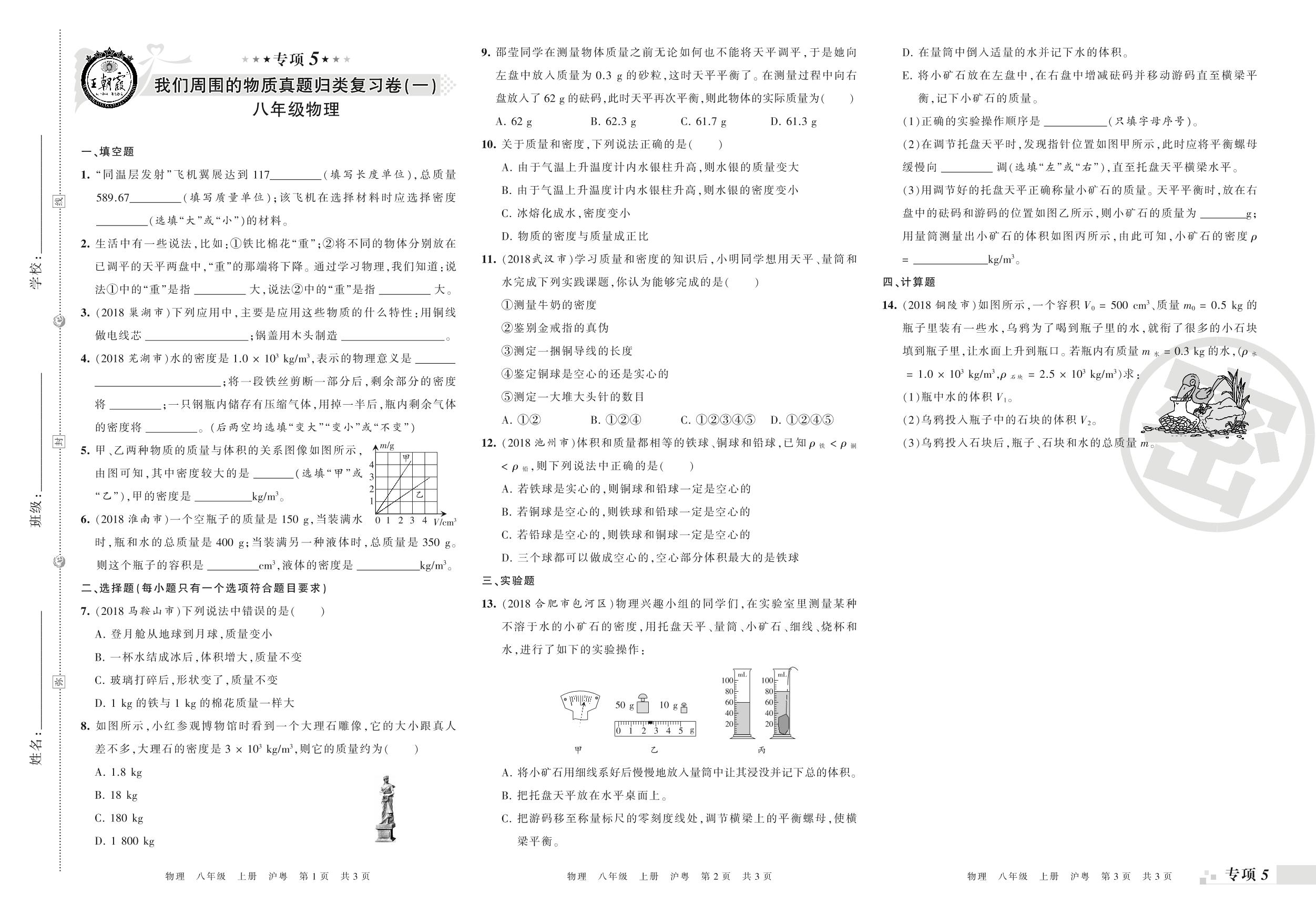 王朝霞期末专项卷——我们周围的物质真题归类复习八年级上册物理(沪粤版)【0】