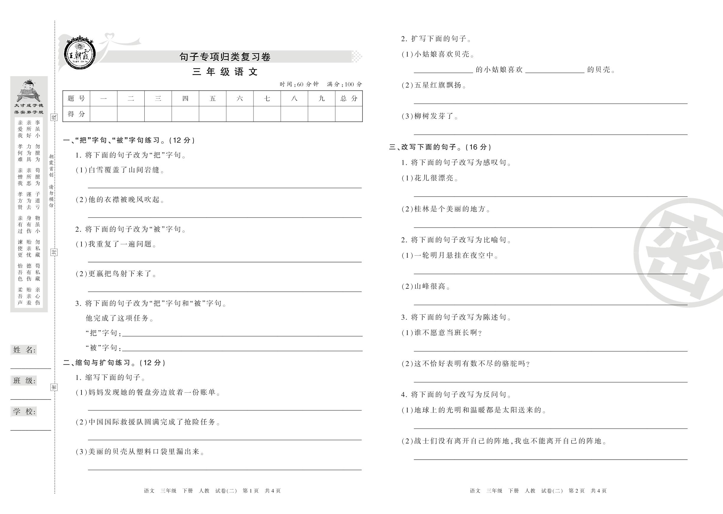 三年级语文人教版下册专项卷