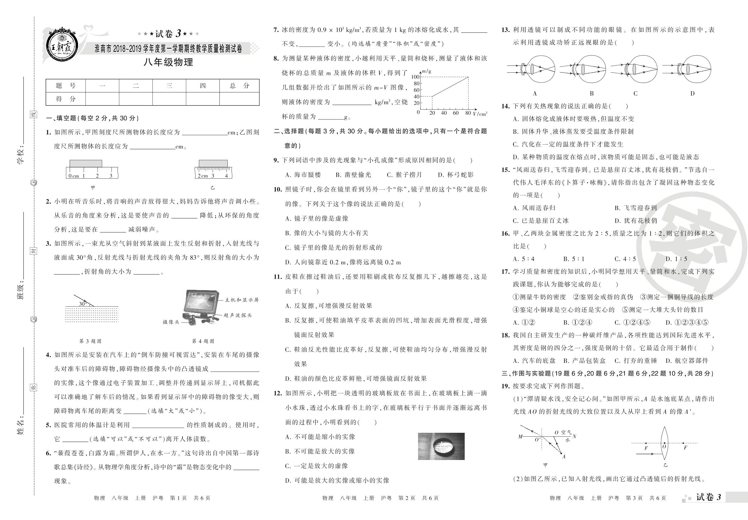 2018-2019学年第一学期淮南市八年级物理试卷(沪粤版)【3】
