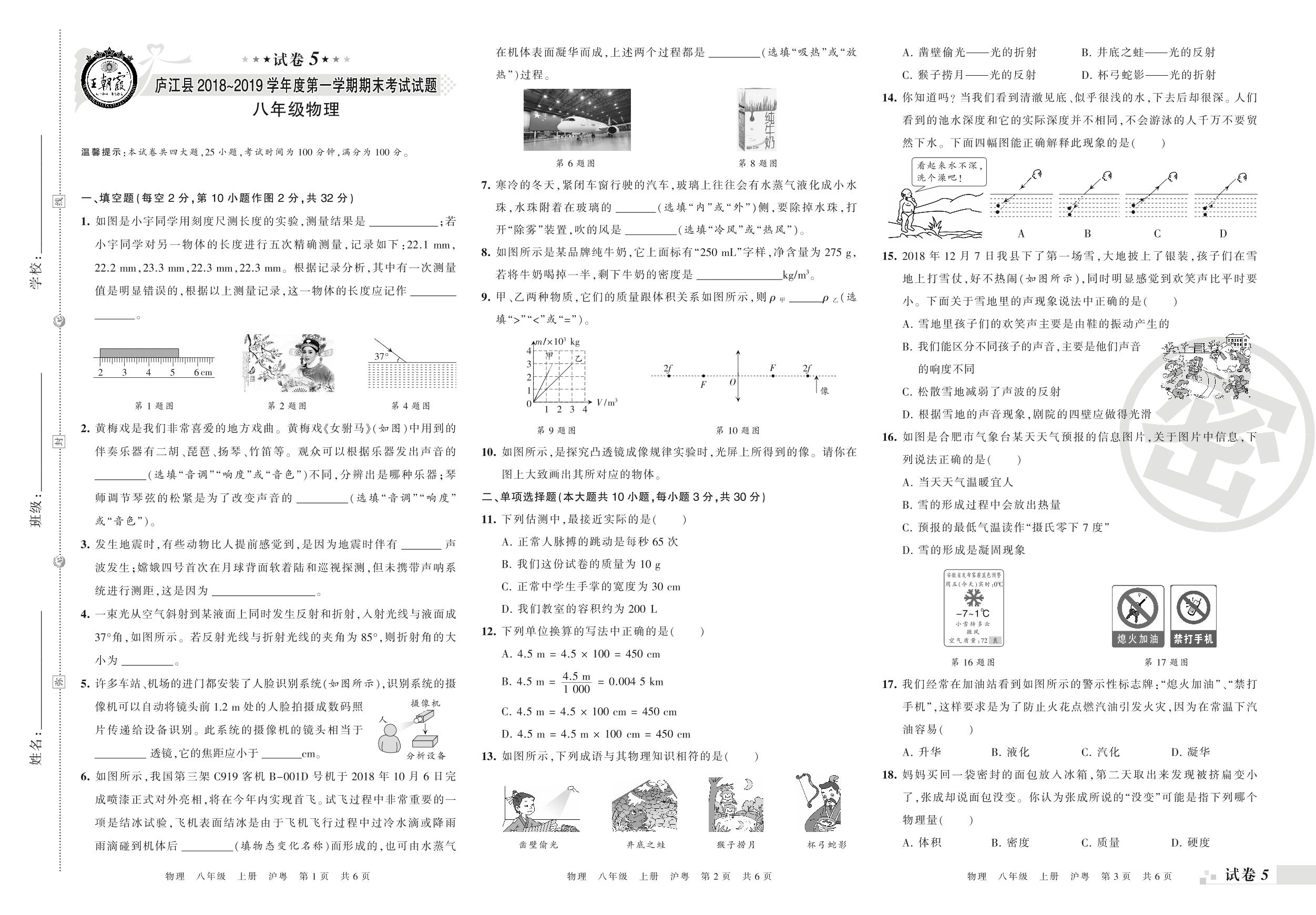 2018-2019学年第一学期合肥市庐江县八年级物理试卷(沪粤版)【5】