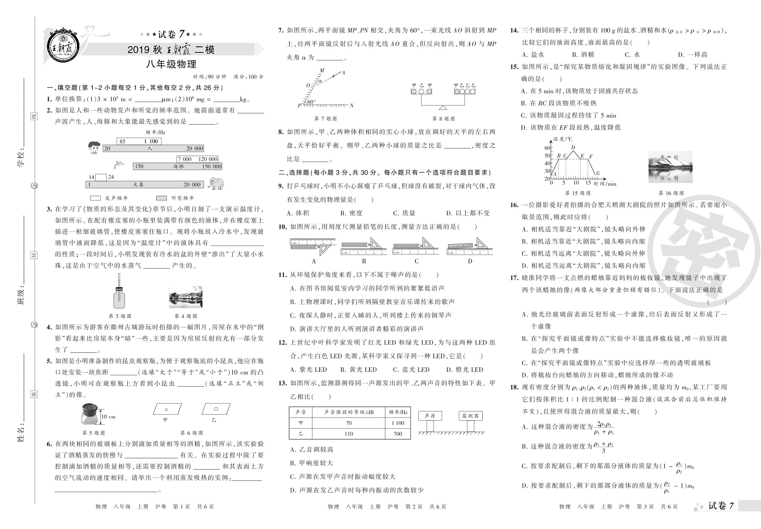 王朝霞期末模拟卷八年级上册物理(沪粤版)_R210810172609【7】