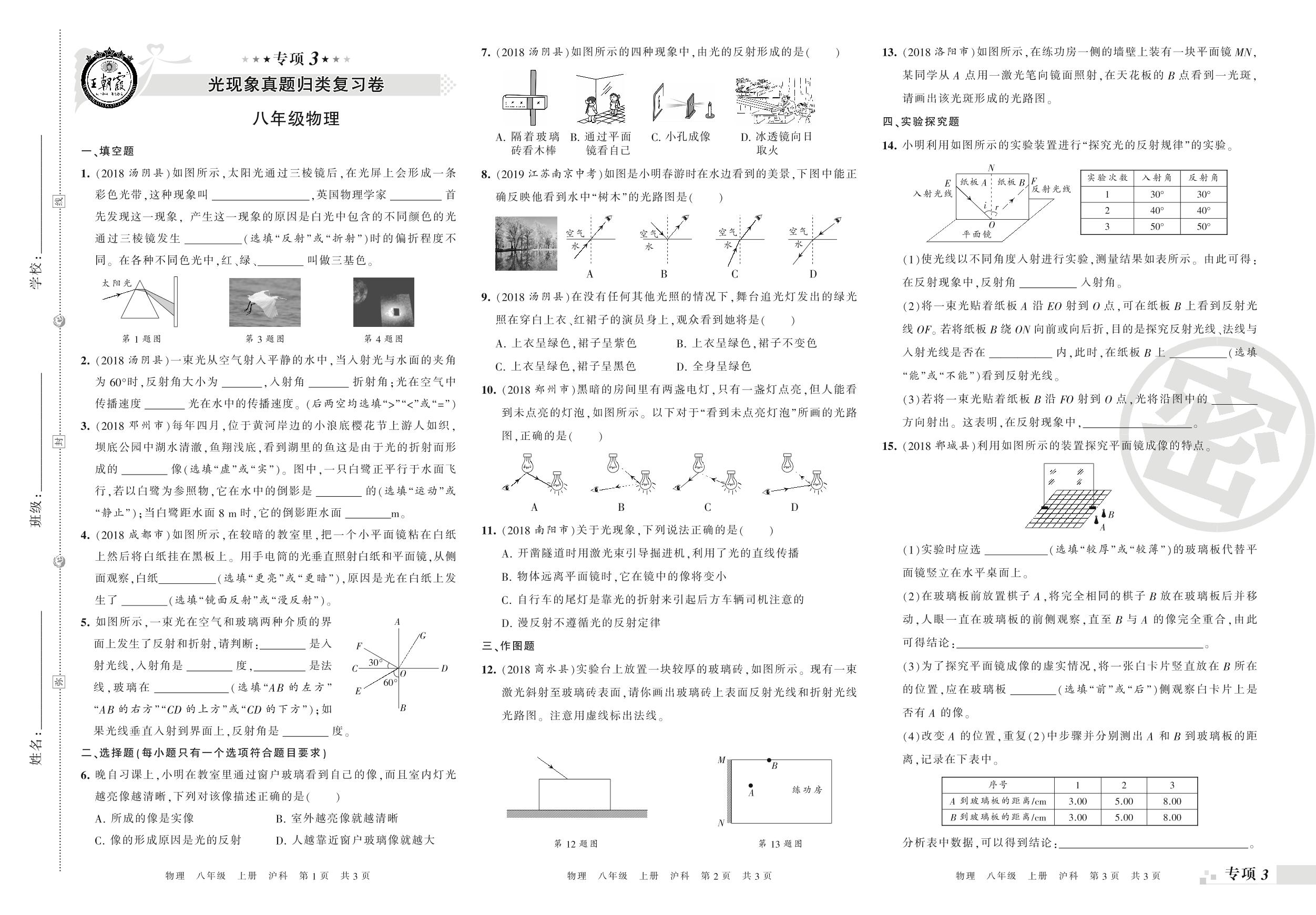 王朝霞期末专项卷——光现象、透镜及其应用真题归类复习八年级上册物理(沪科版)_R210810172635【0】