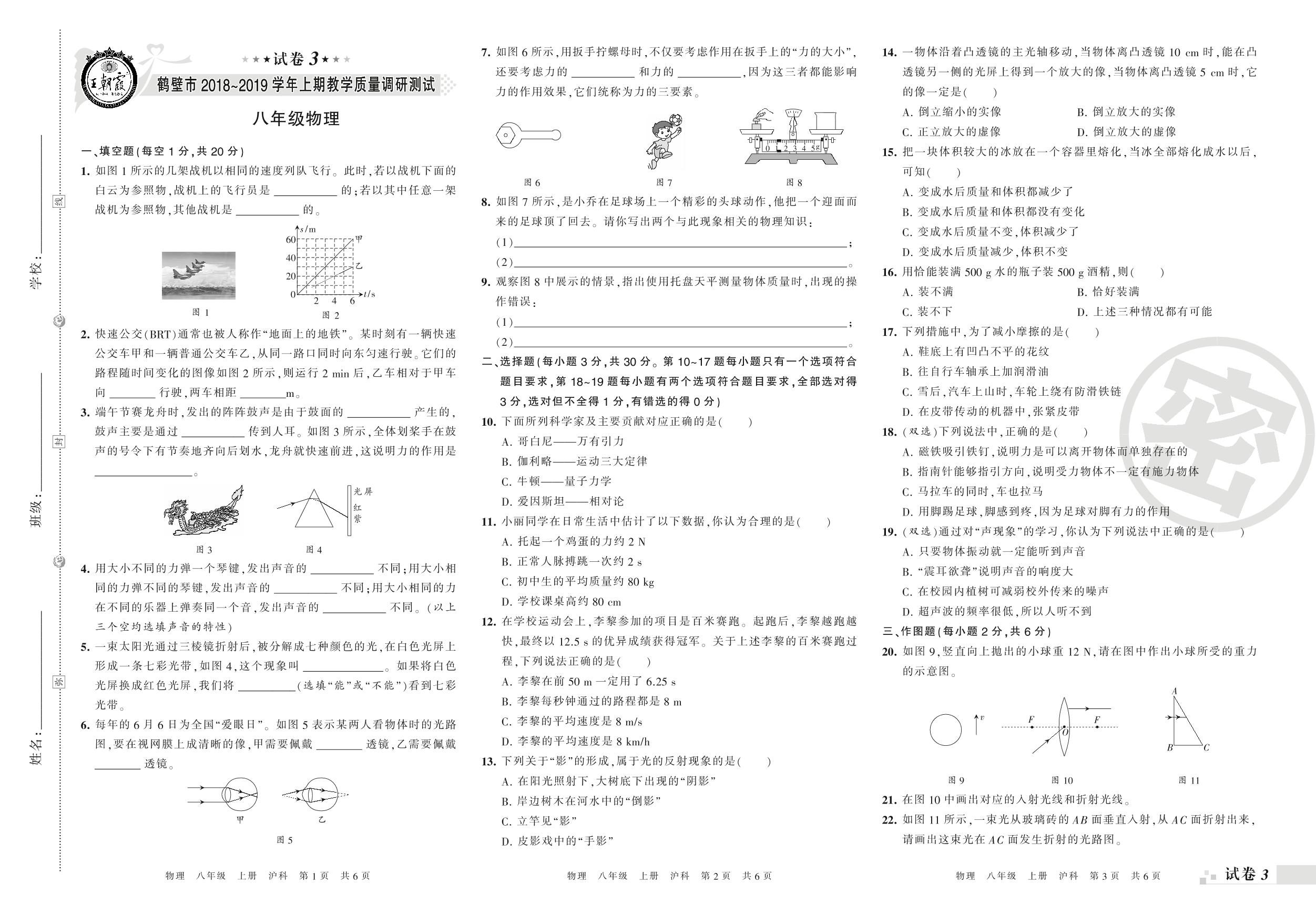 2018-2019学年第一学期鹤壁市八年级物理试卷(沪科版)【3】