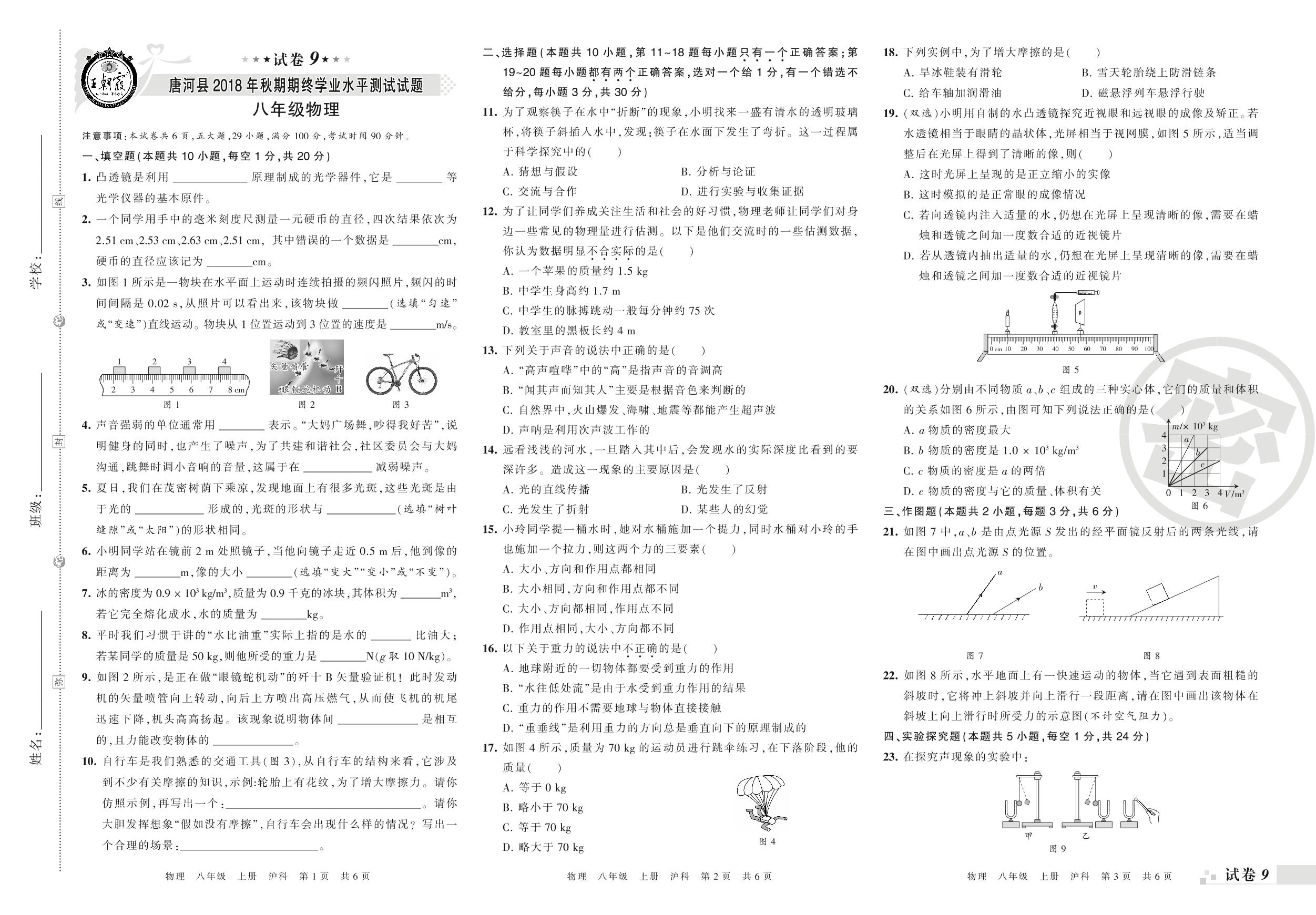 2018-2019学年第一学期南阳市唐河县八年级物理试卷(沪科版)【9】