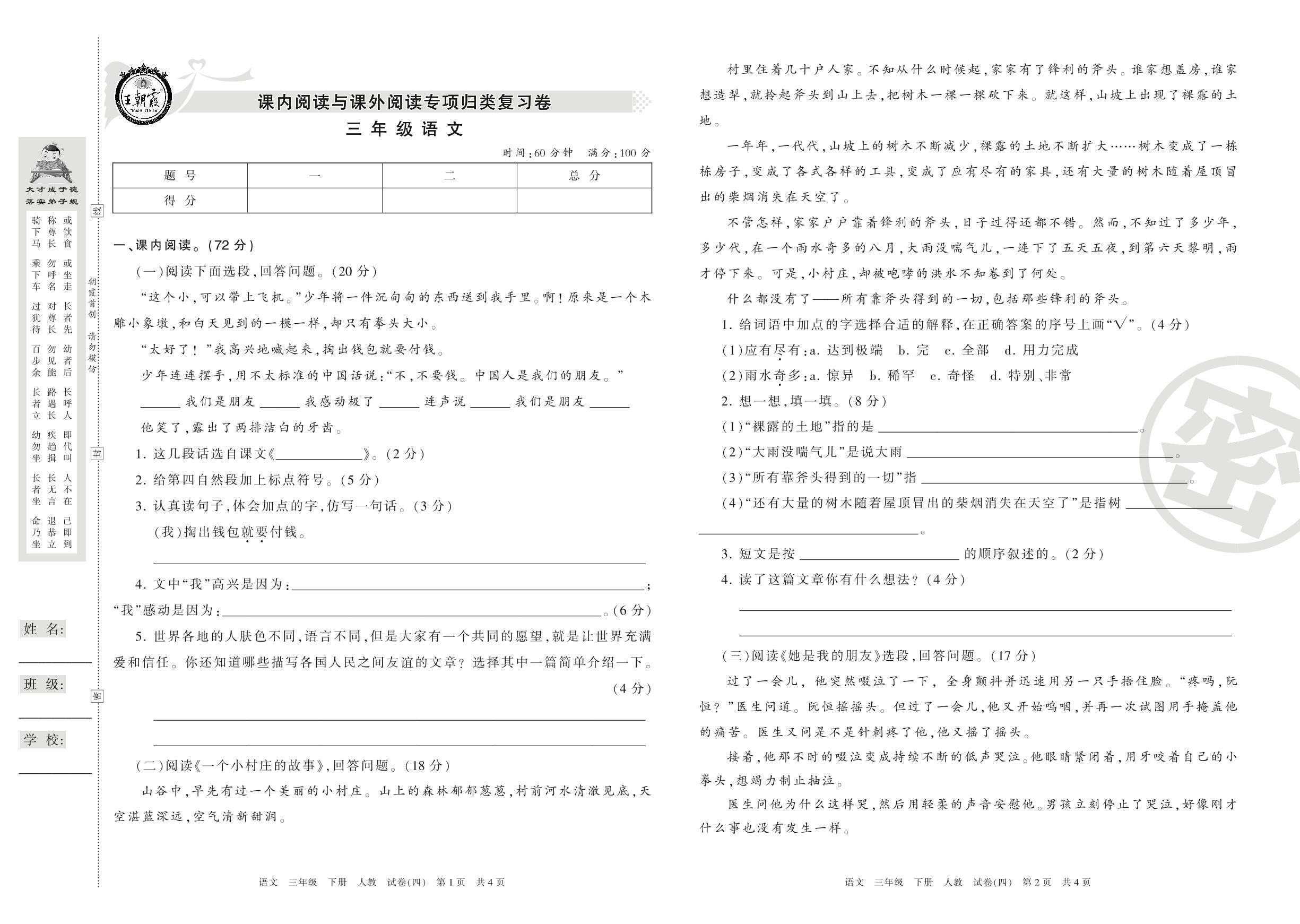 王朝霞期末专项卷三年级下册语文(人教版)_R21080193633【4】