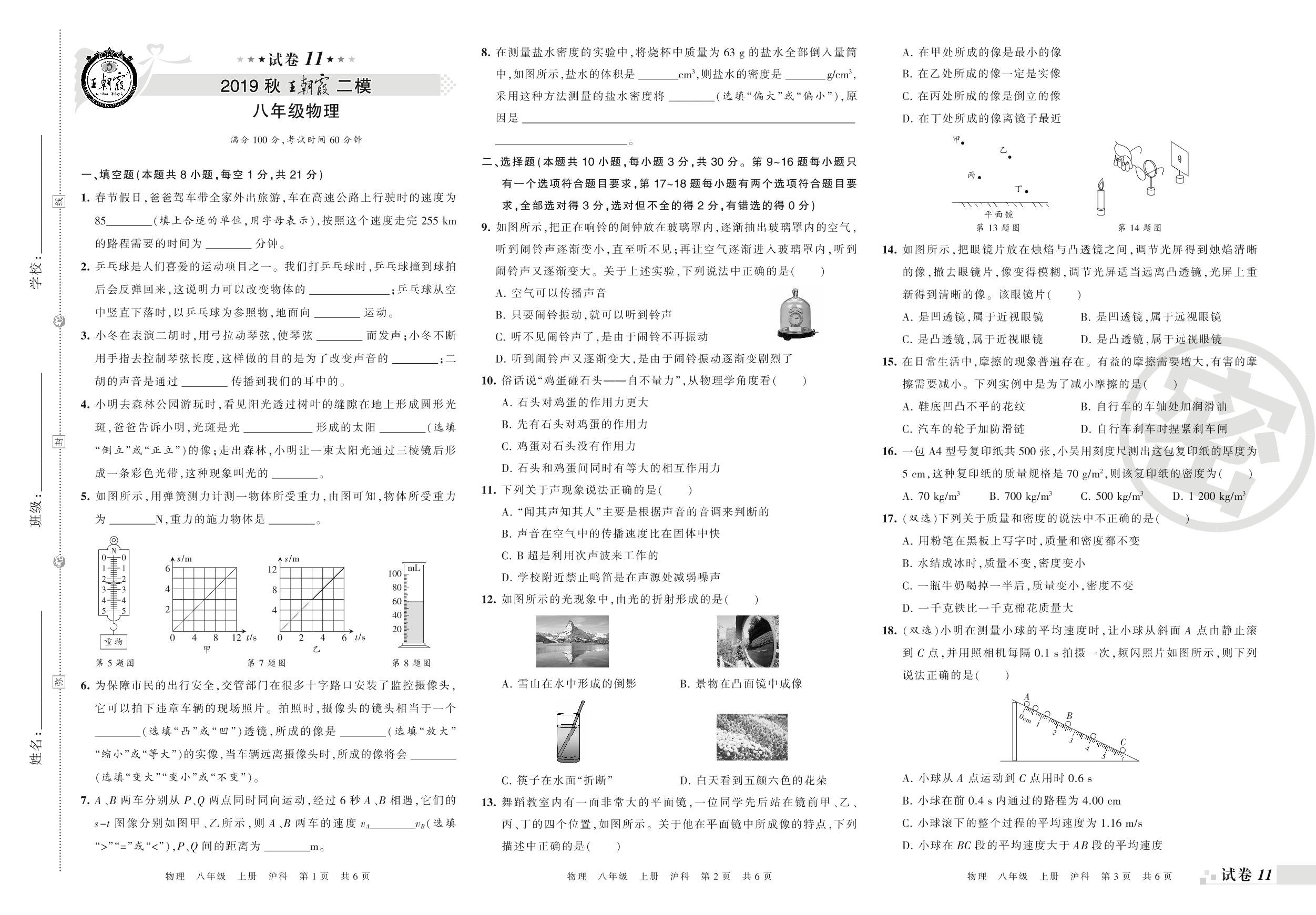 2019-2020学年第一学期王朝霞期末模拟卷八年级物理(沪科版)_R210810172804【11】