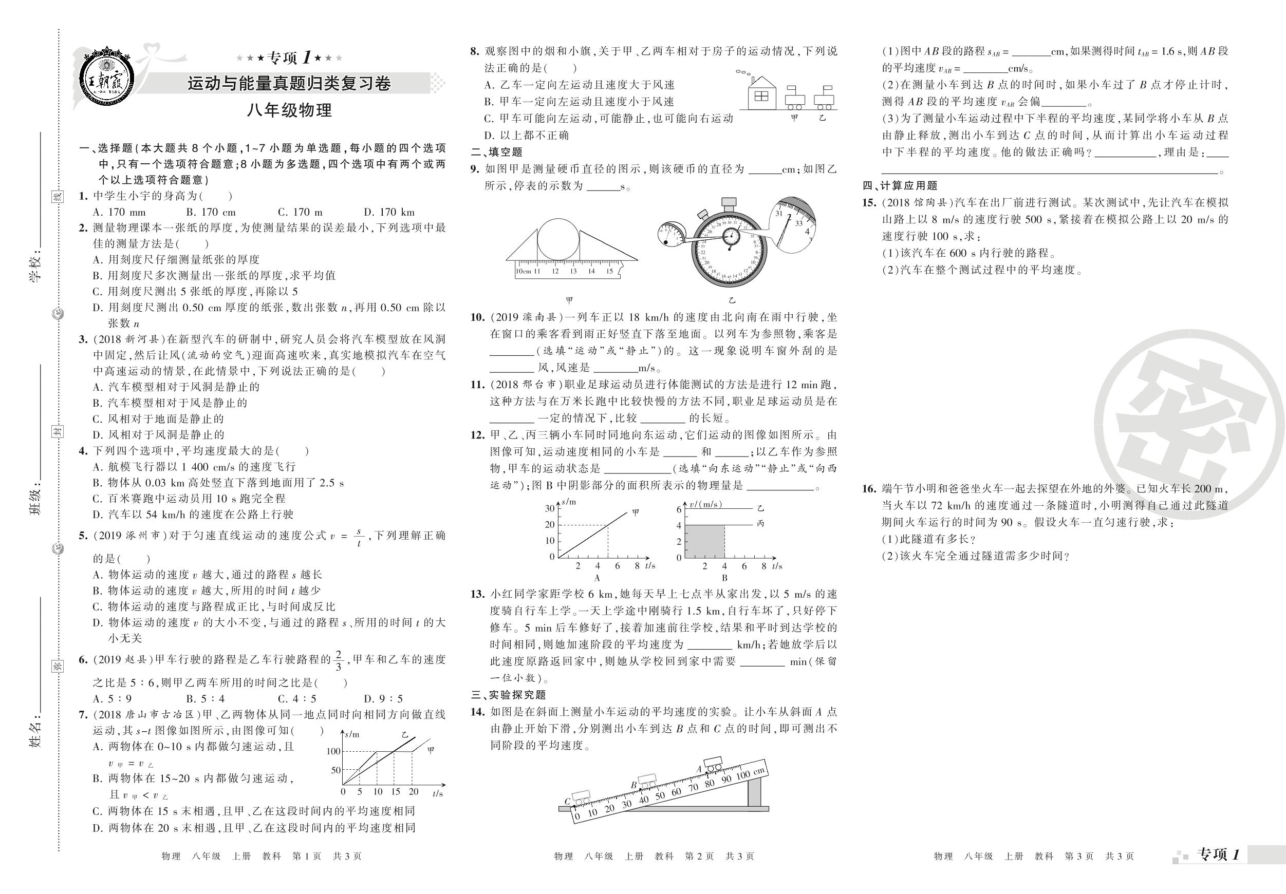 王朝霞期末专项卷——运动与能量、声真题归类复习八年级上册物理(教科版)_R210810172814【0】