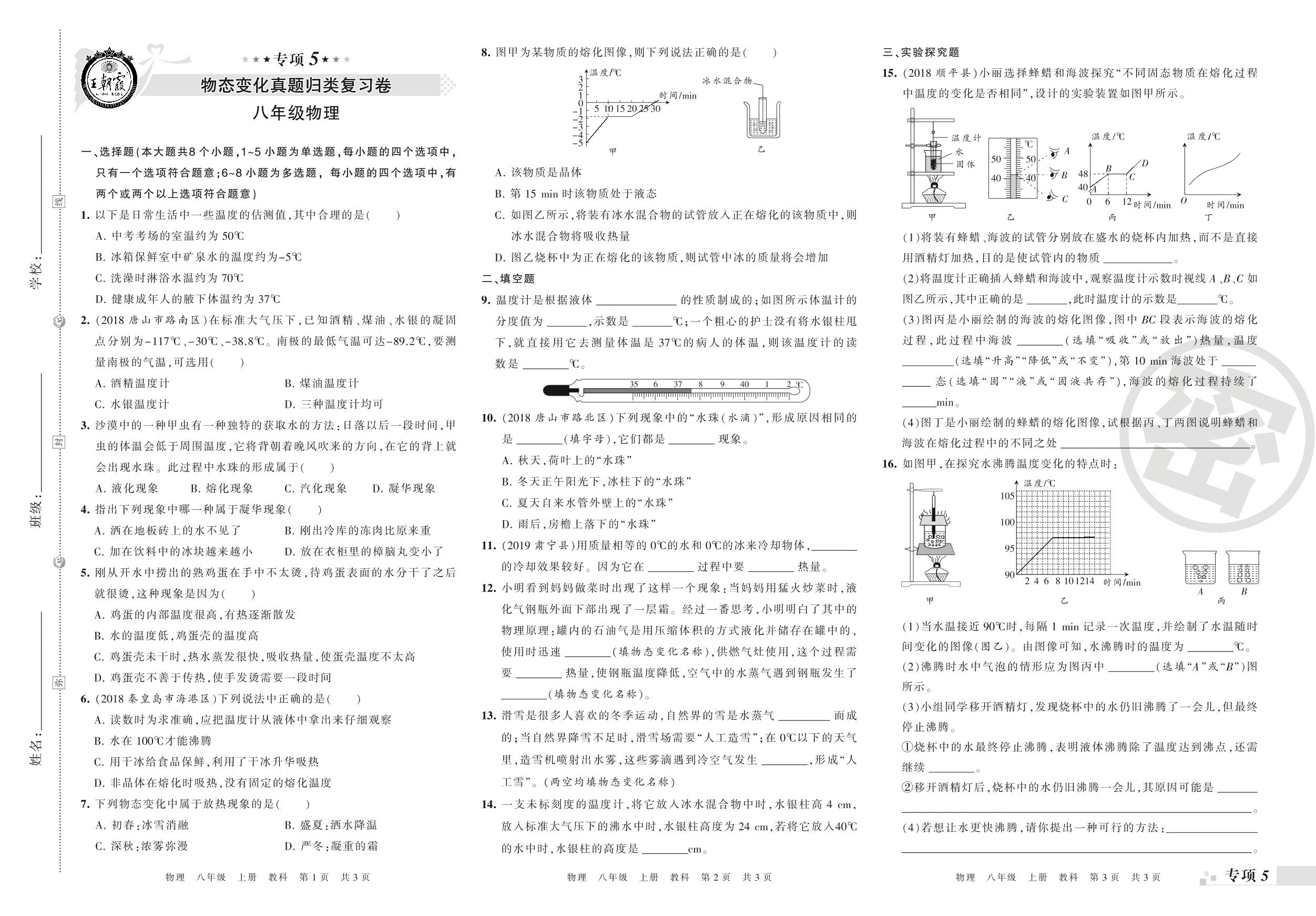 王朝霞期末专项卷——物态变化、质量与密度真题归类复习八年级上册物理(教科版)_R210810172829【0】