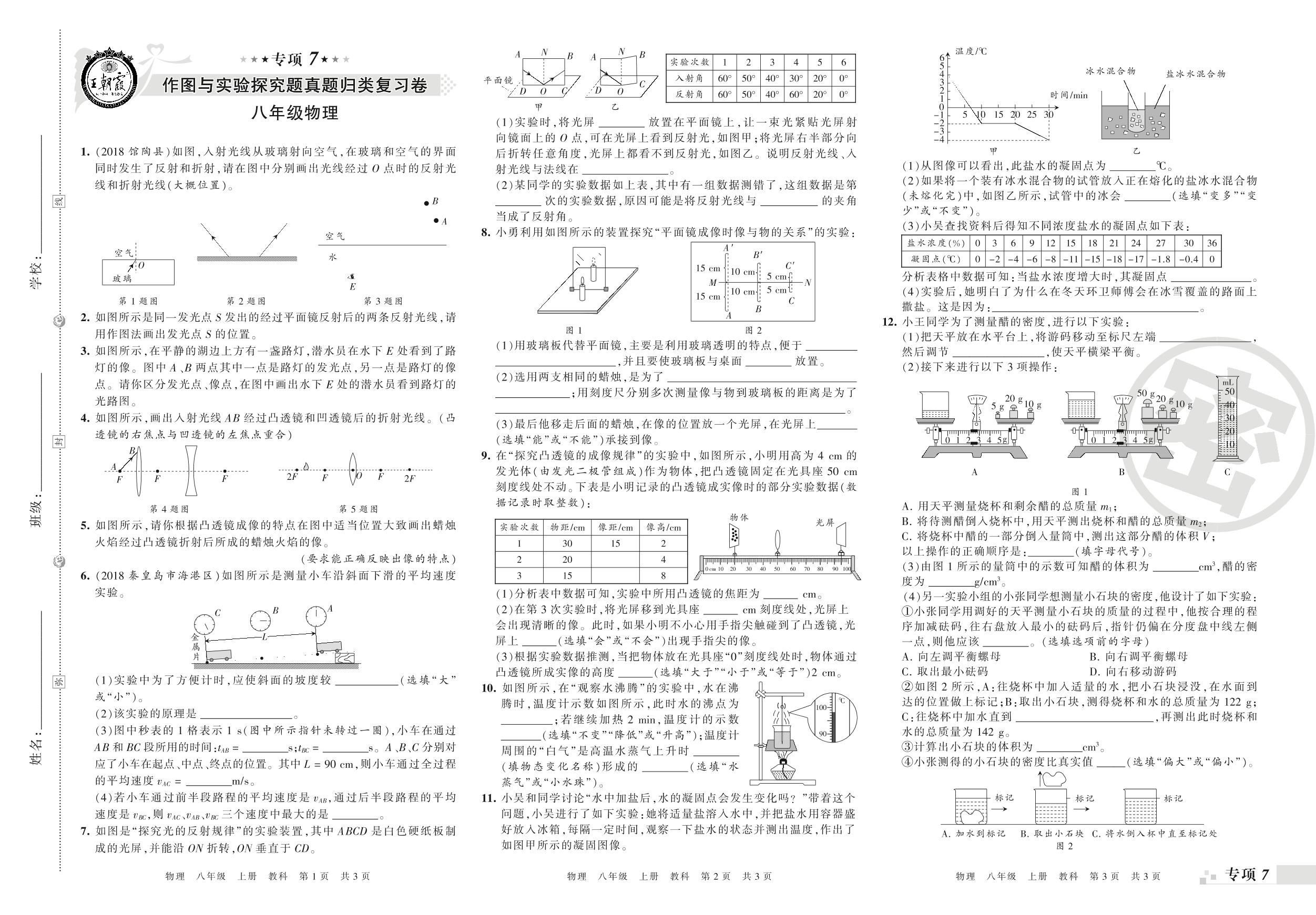 王朝霞期末专项卷——作图与实验探究图、计算应用题真题归类复习八年级上册物理(教科版)_R210810172838【0】