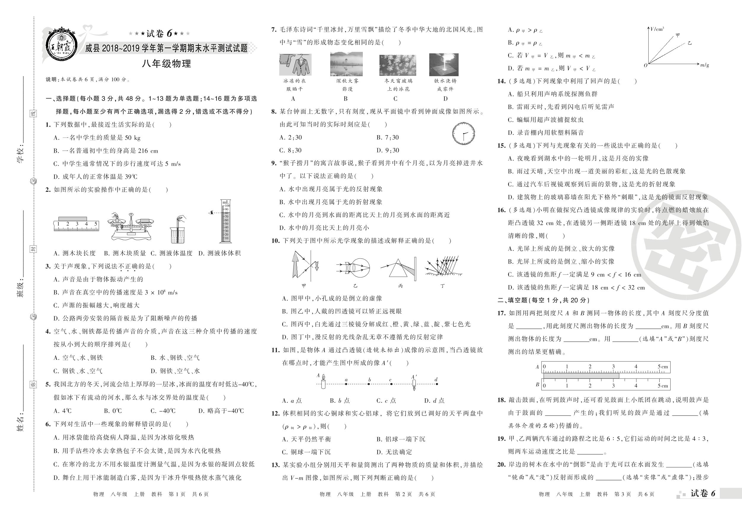 2018-2019学年第一学期邢台市威县八年级物理试卷(教科版)【6】