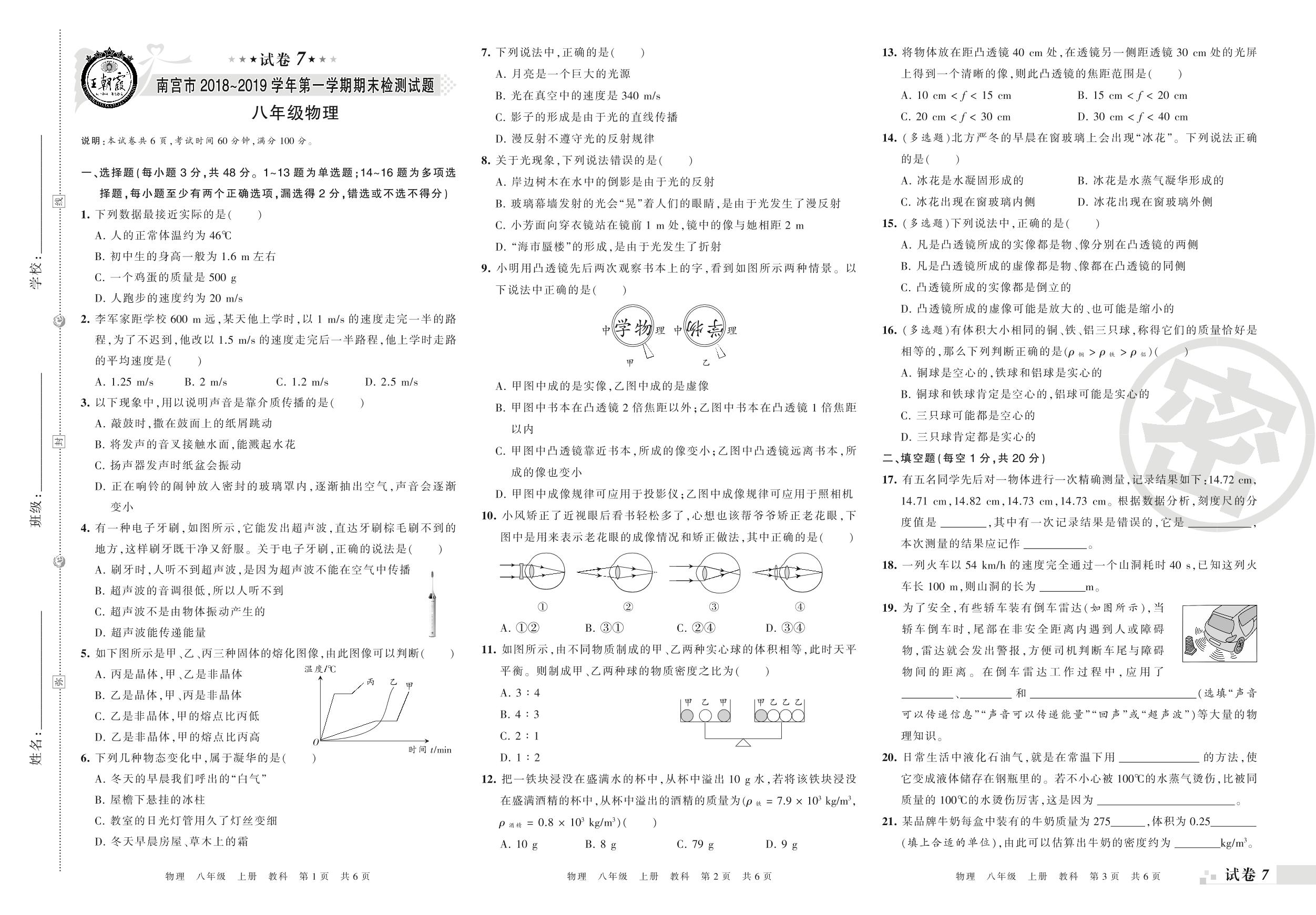 2018-2019学年第一学期南宫市八年级物理试卷(教科版)【7】