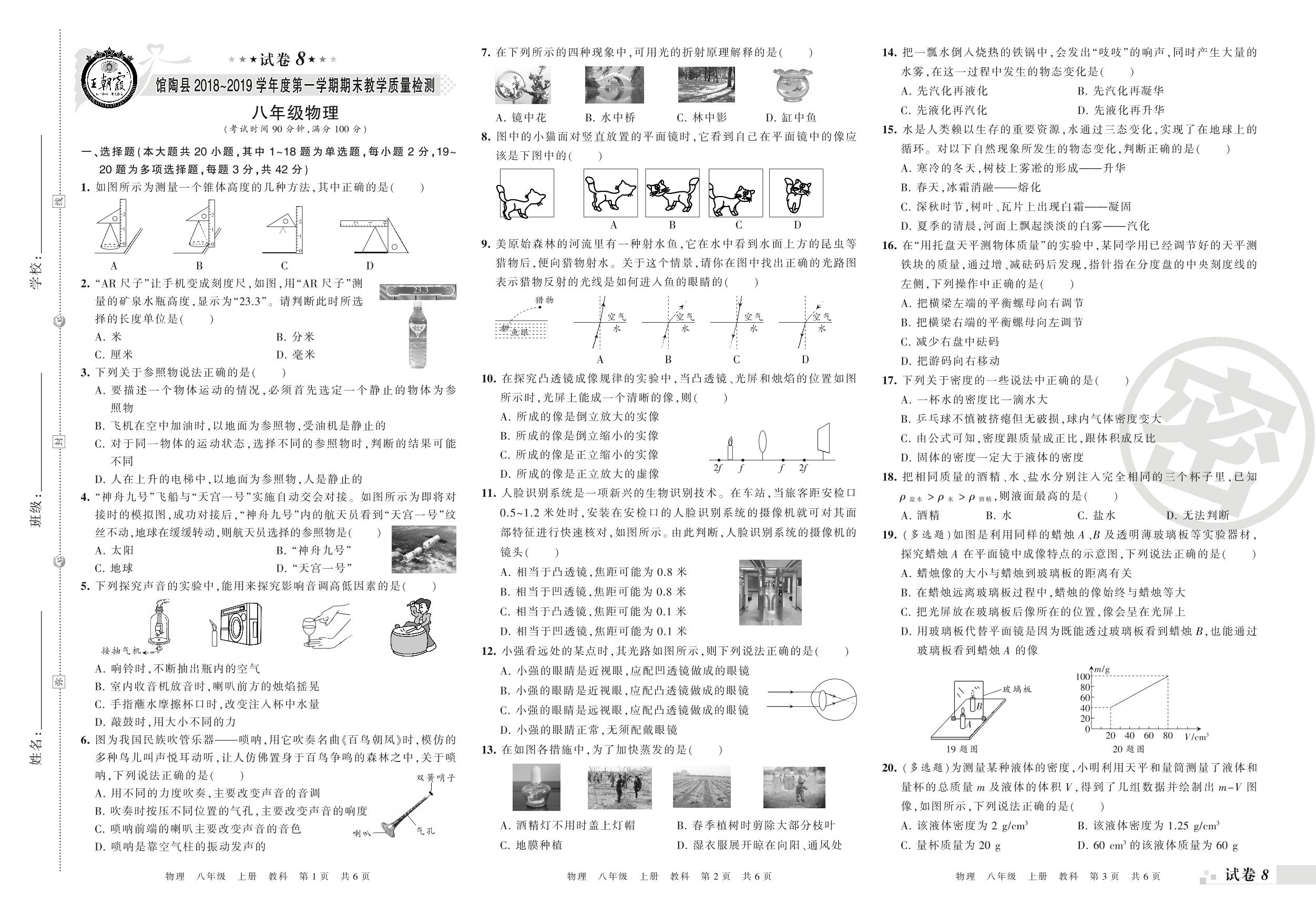 2018-2019学年第一学期邯郸市馆陶县八年级物理试卷(教科版)【8】