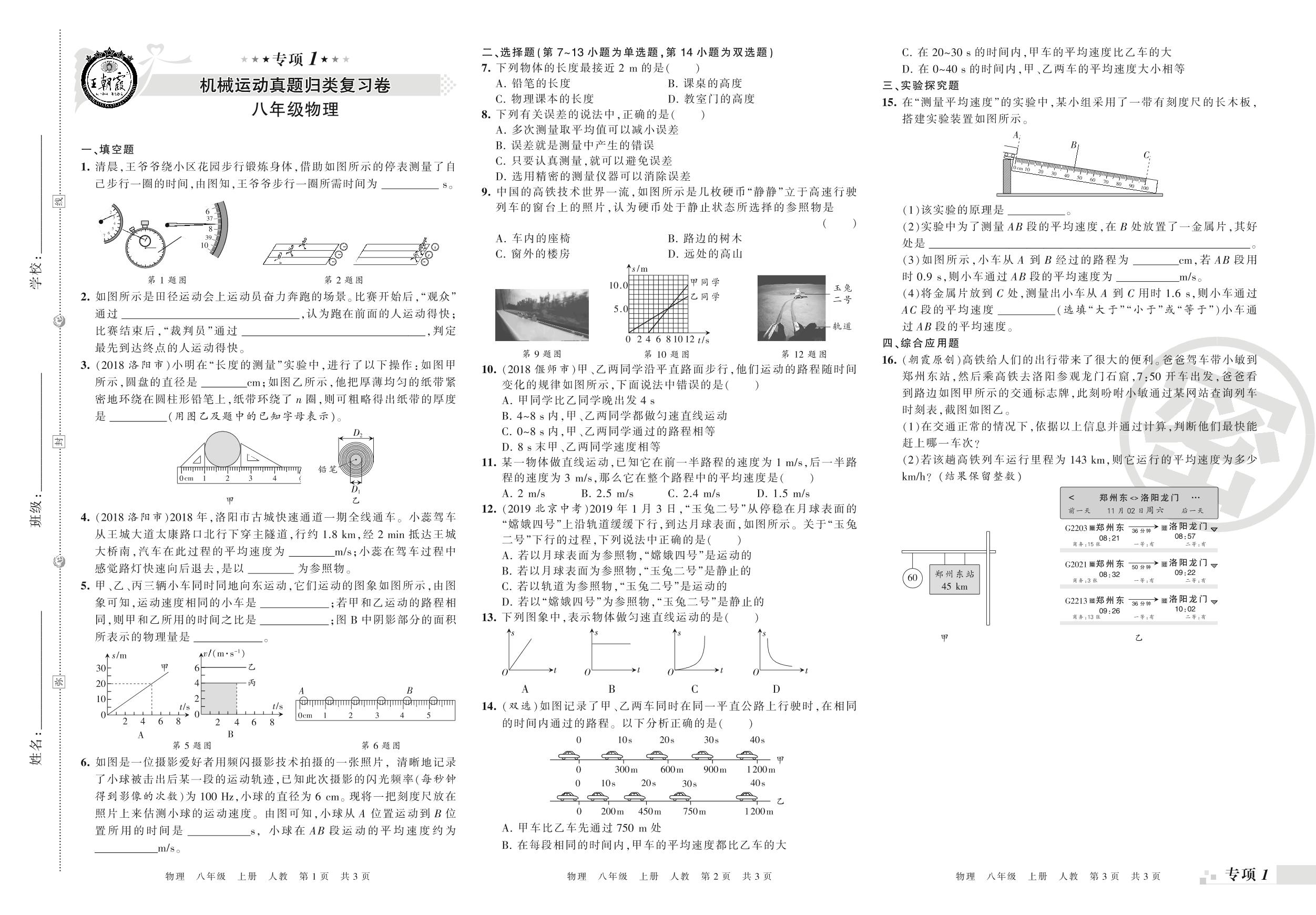王朝霞期末专项卷——机械运动、声现象真题归类复习八年级上册物理(人教版)_R210810172959【0】