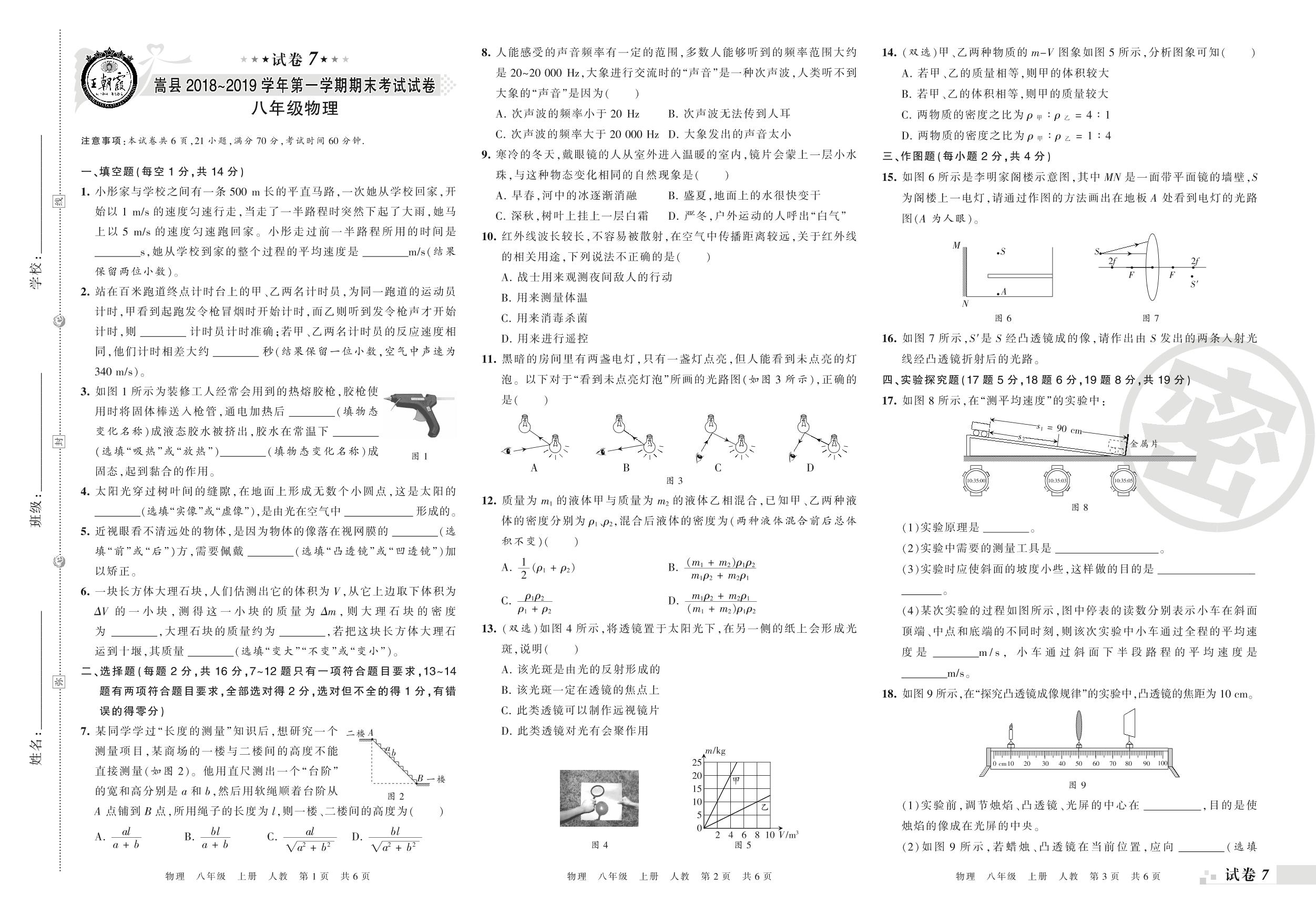 2018-2019学年第一学期洛阳市嵩县八年级物理试卷(人教版)【7】