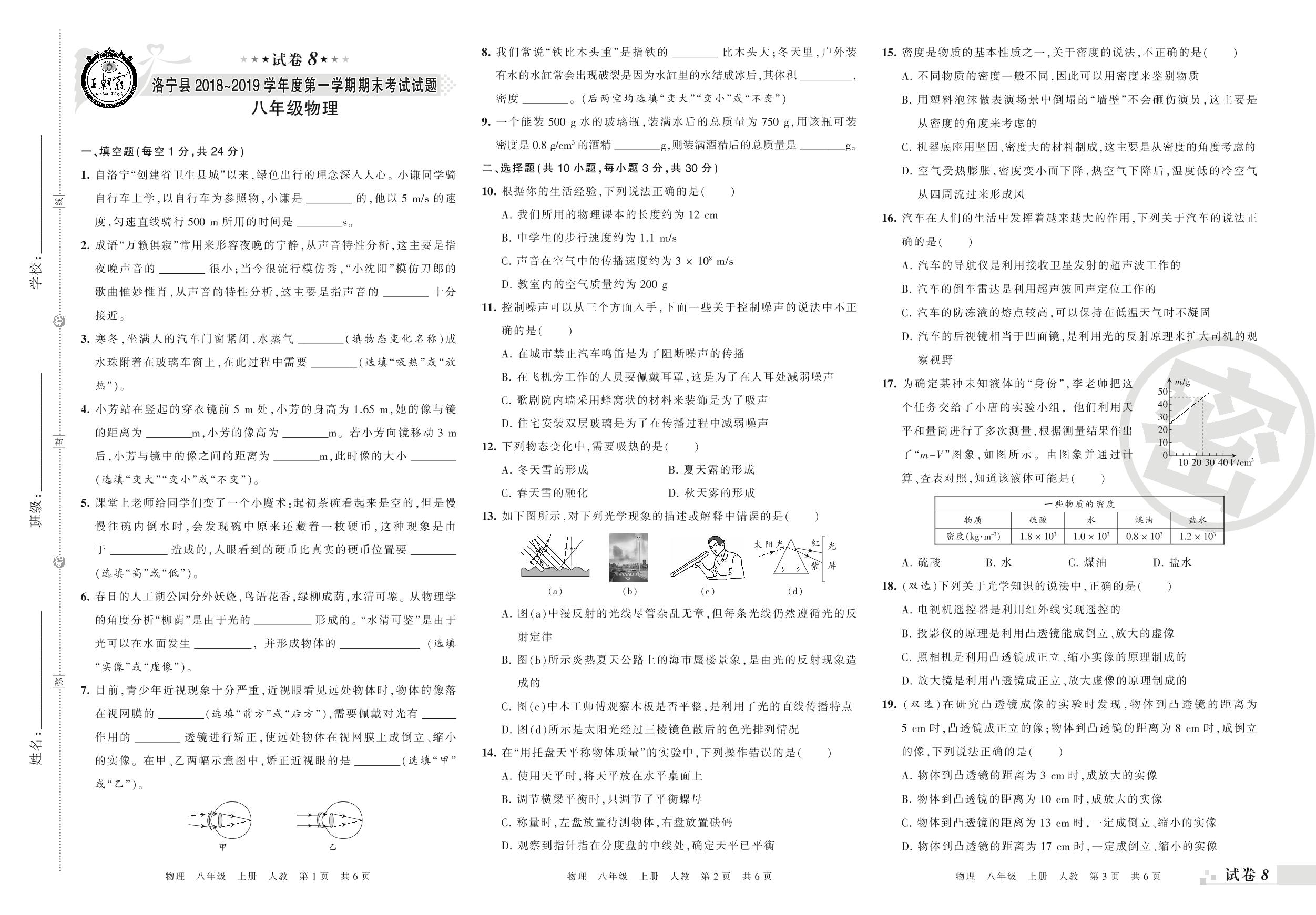2018-2019学年第一学期洛阳市洛宁县八年级物理试卷(人教版)【8】