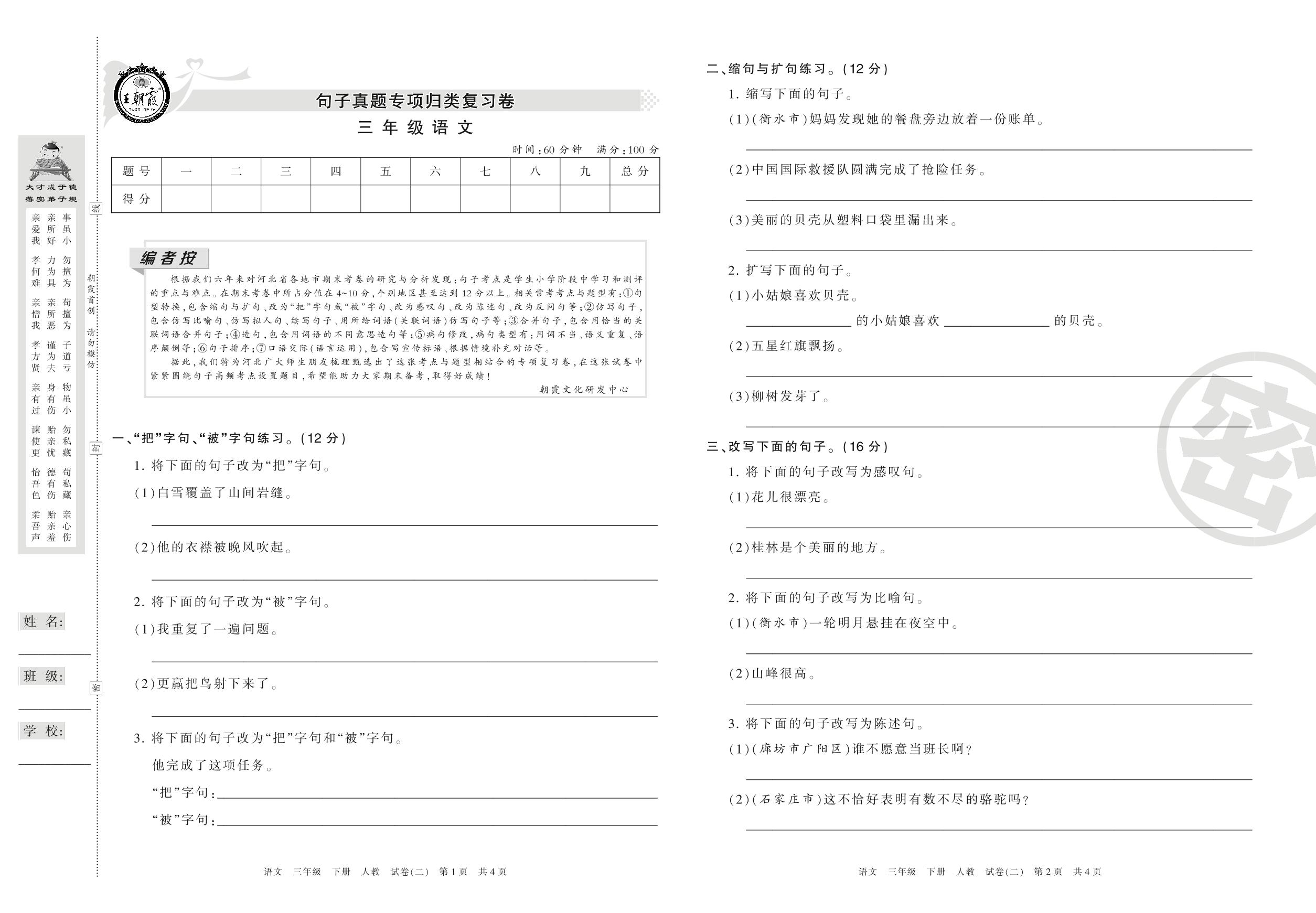 王朝霞期末专项卷三年级下册语文(人教版)_R21080193708【2】