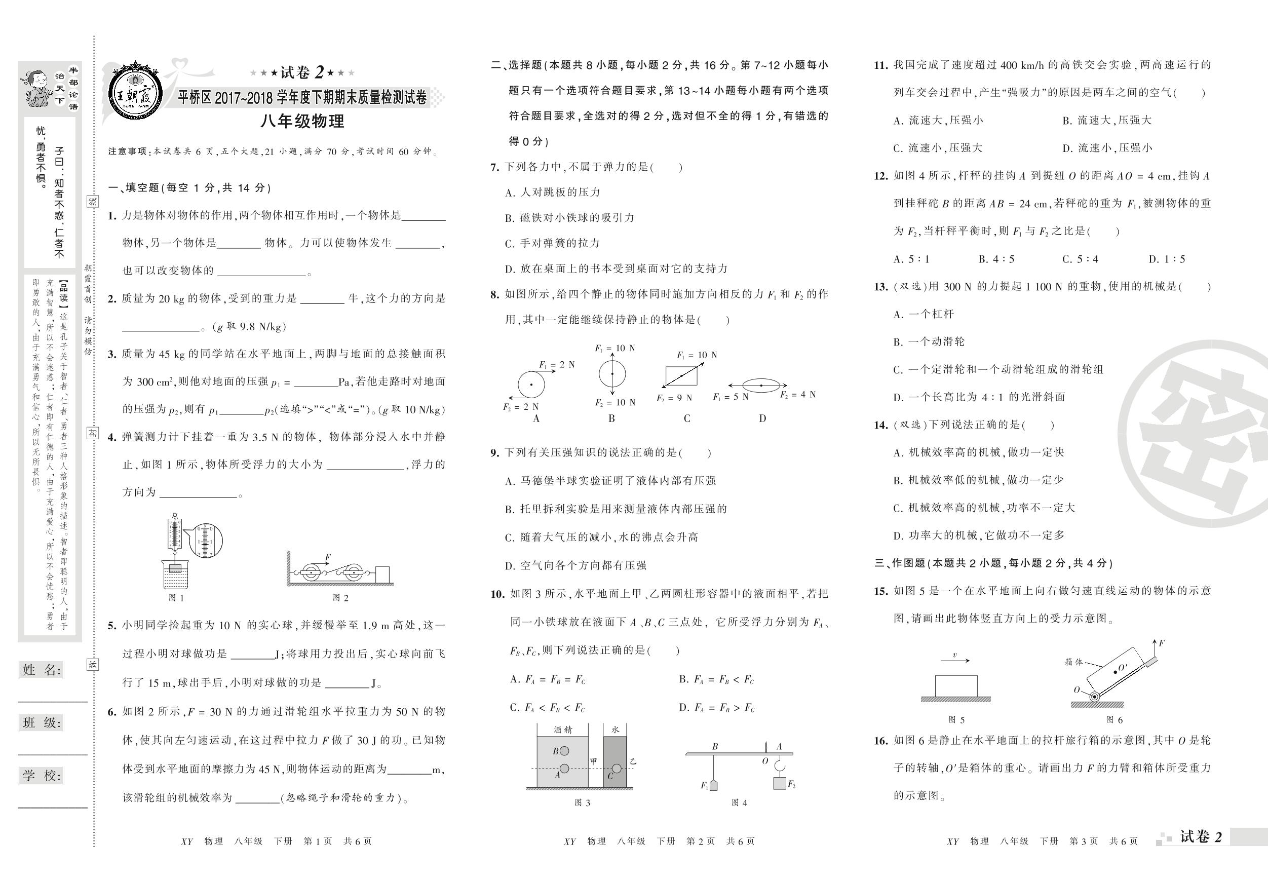 2017-2018学年第二学期信阳市平桥区八年级物理试卷(人教版)【2】