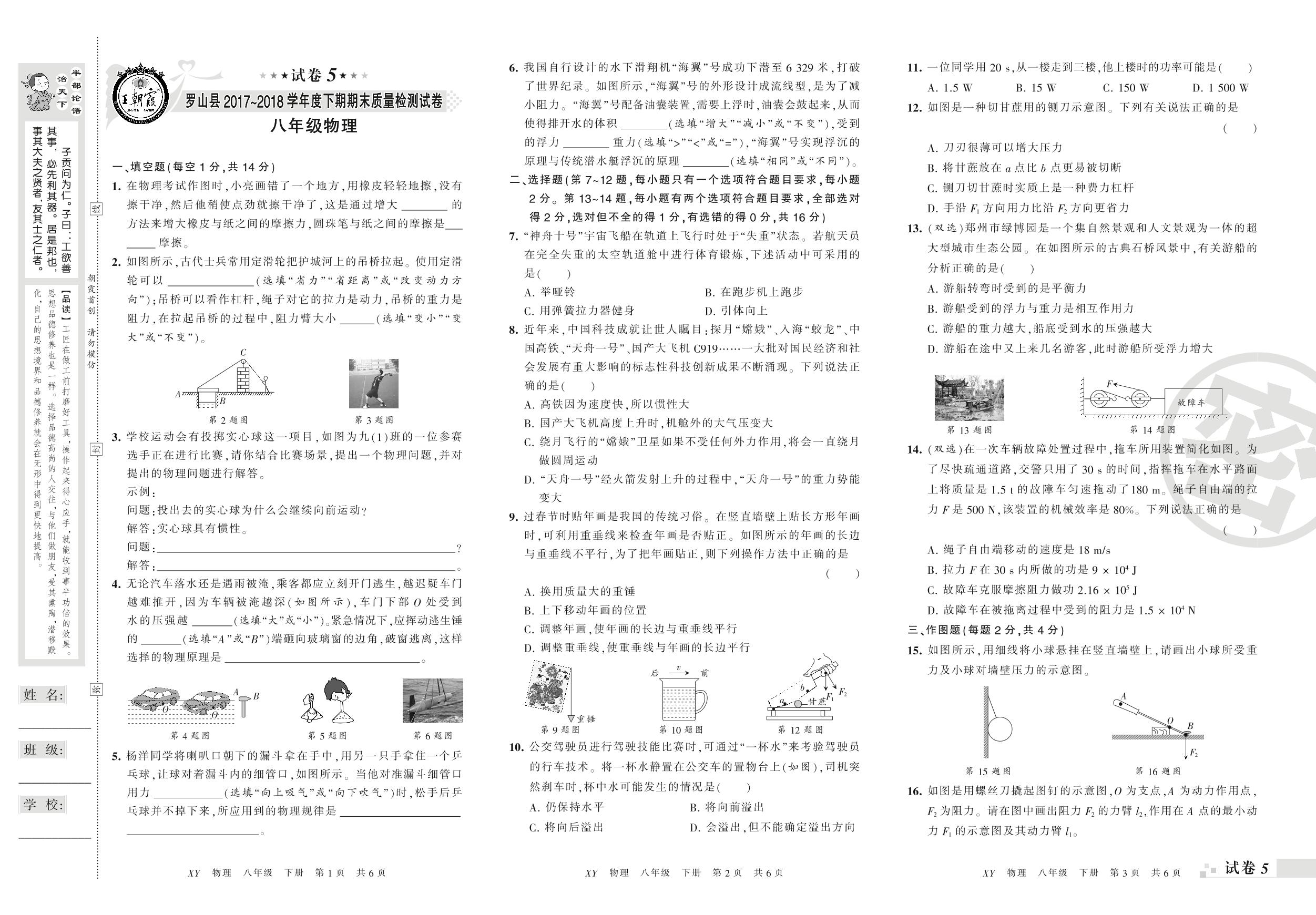 2017-2018学年第二学期信阳市罗山县八年级物理试卷(人教版)【5】