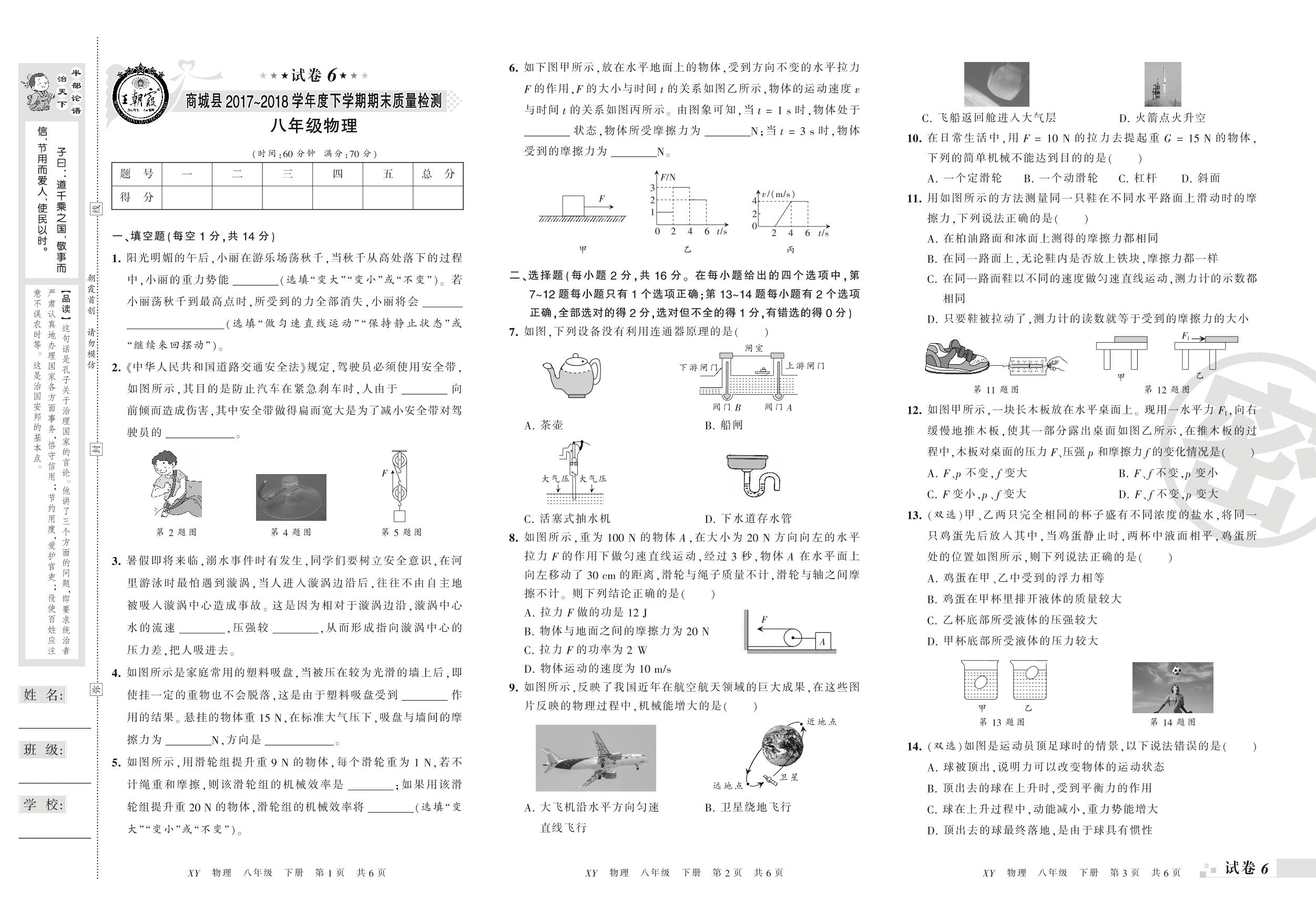 八年级物理人教版下册期末卷