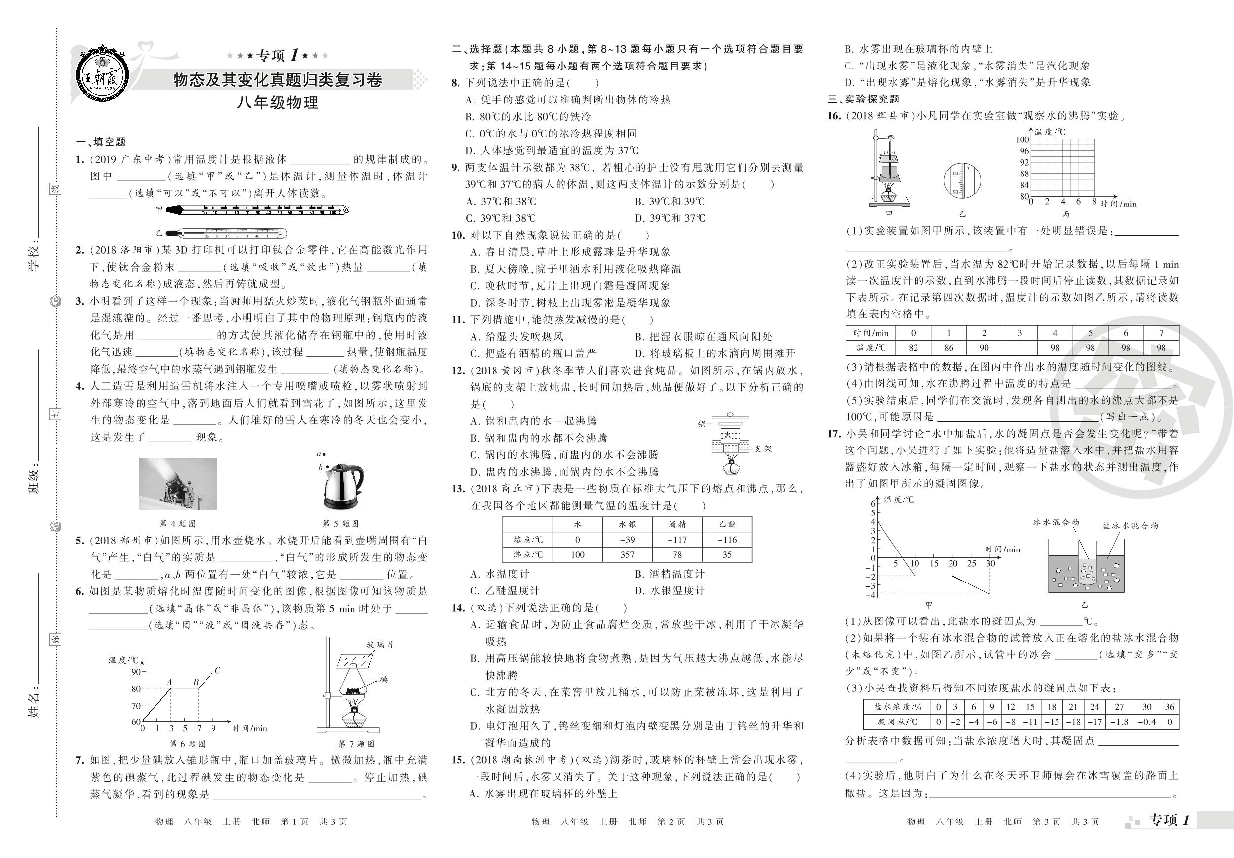王朝霞期末专项卷——物态及其变化、物质世界的尺度、质量和密度真题归类复习八年级上册物理(北师版)_R210810173740【0】