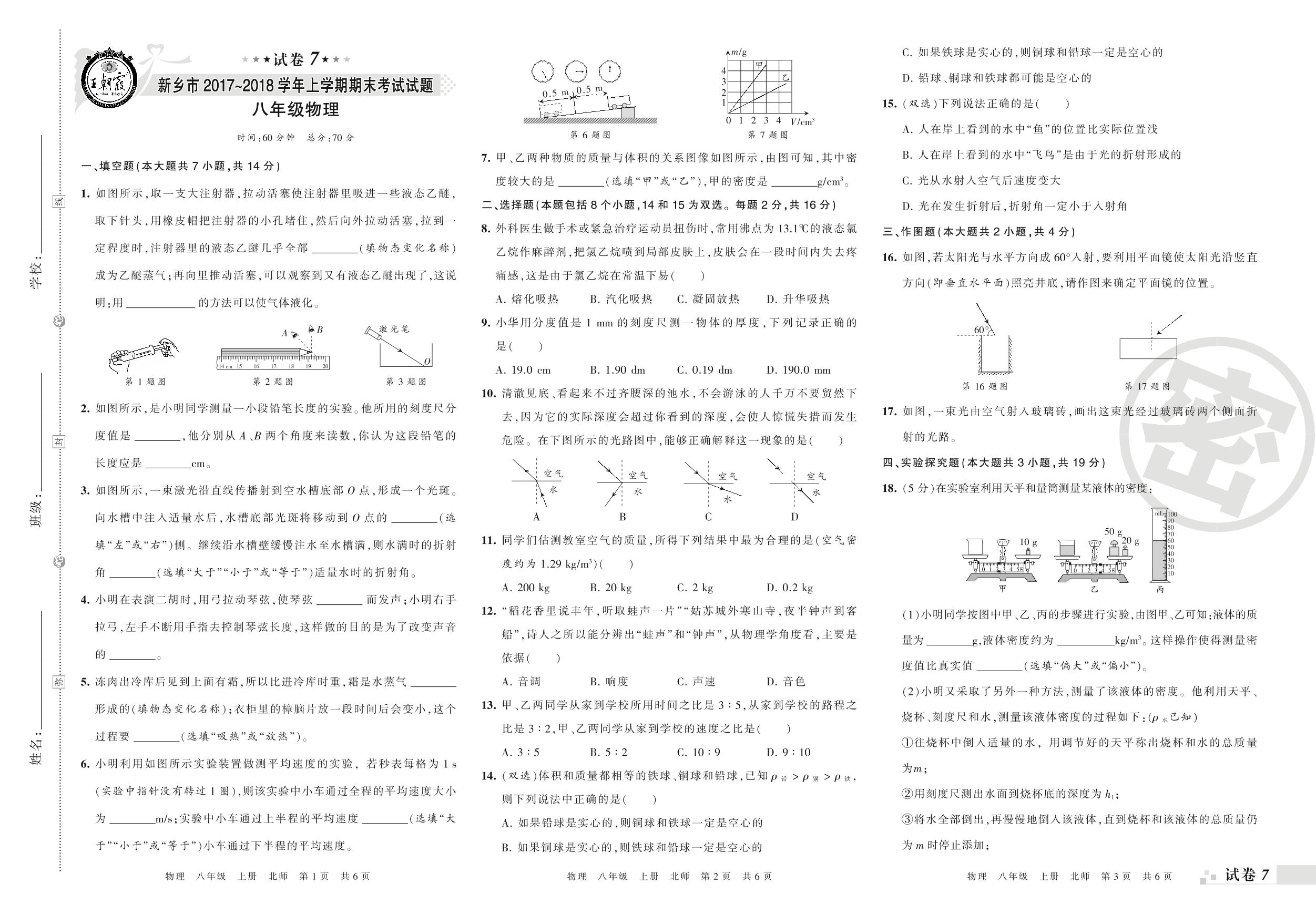 2017-2018学年第一学期新乡市八年级物理试卷(北师版)【7】