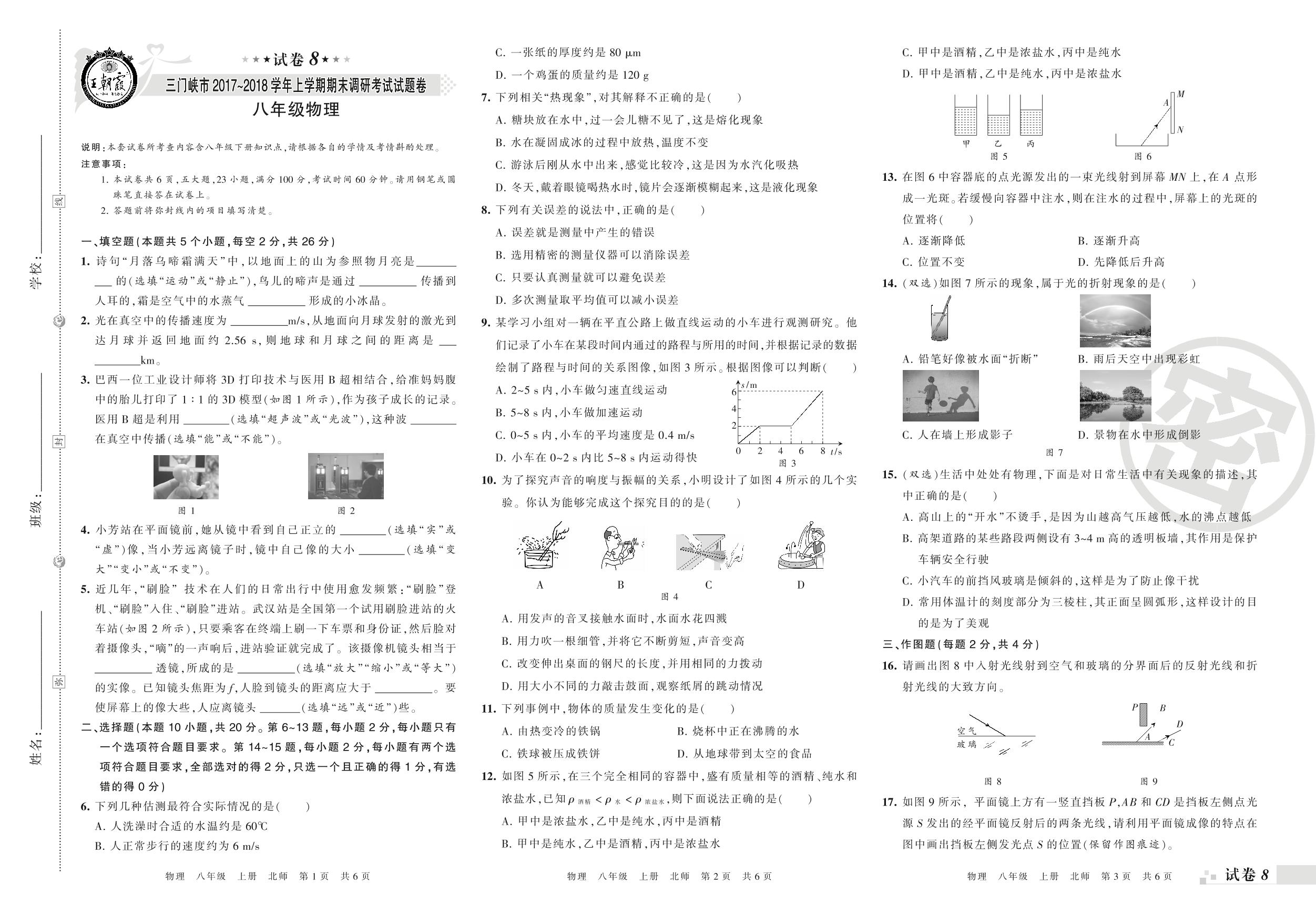 2017-2018学年第一学期三门峡市八年级物理试卷(北师版)【8】