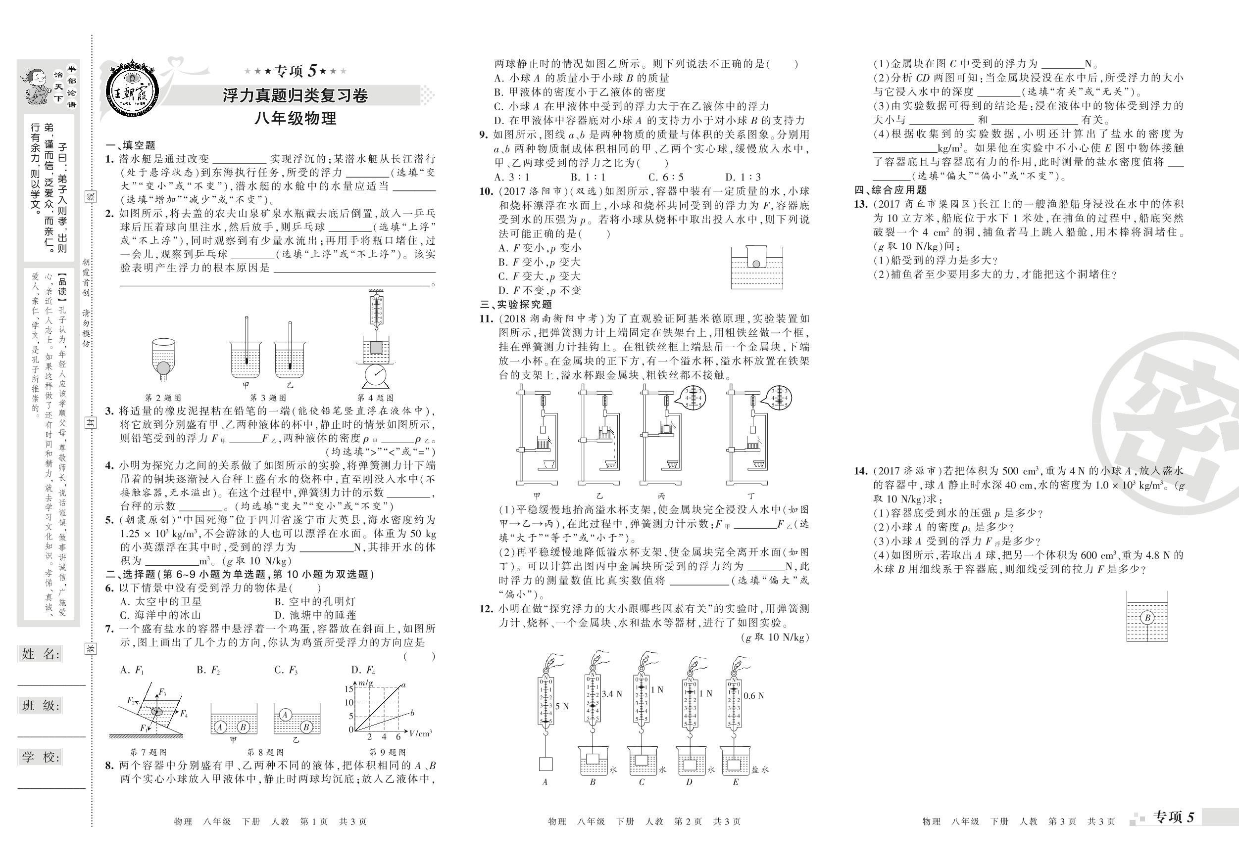 王朝霞期末专项卷——浮力真题归类复习、功和机械能真题归类复习八年级下册物理(人教版)_R210810173929【0】