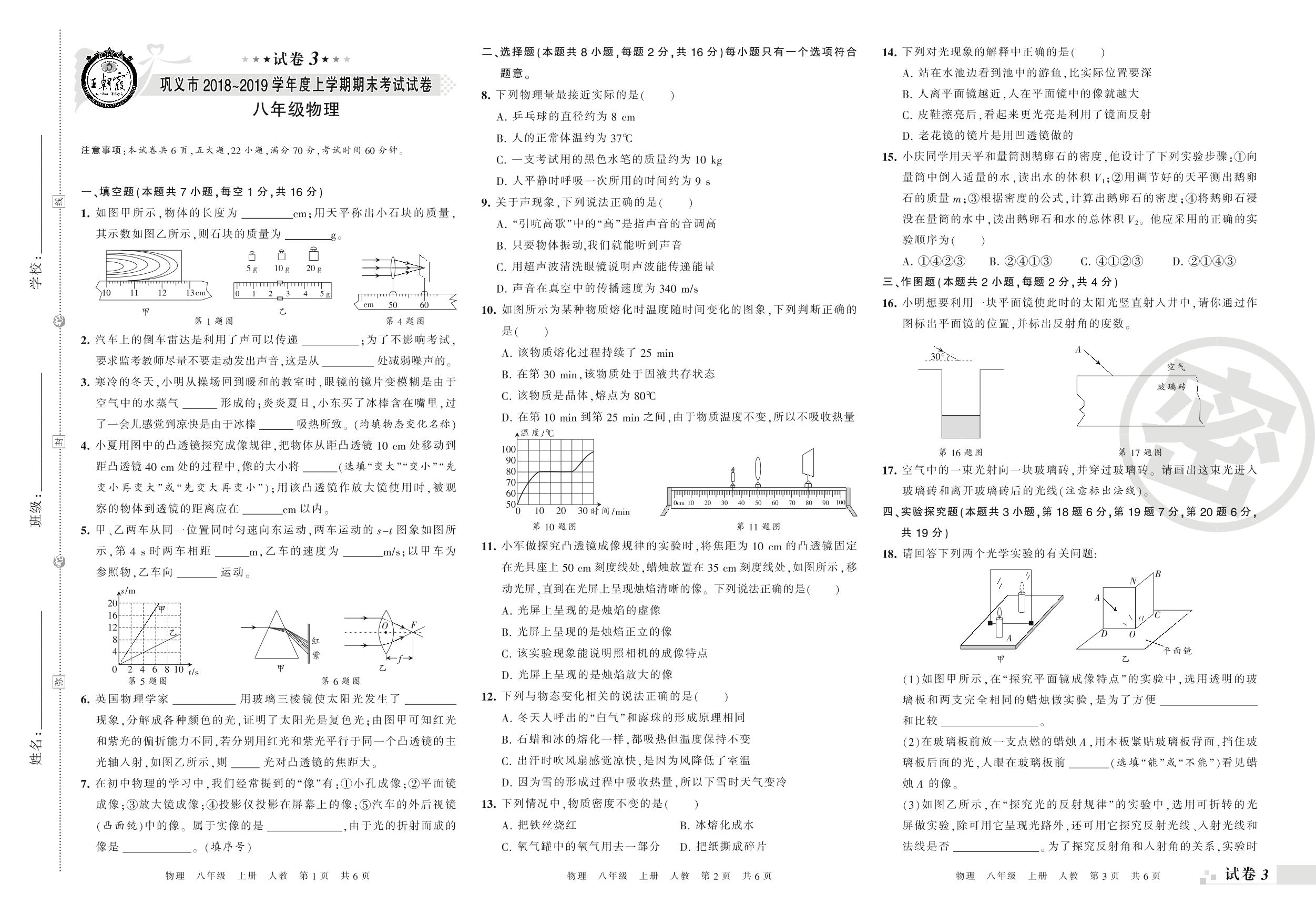 2018-2019学年第一学期巩义市八年级物理试卷(人教版)【3】