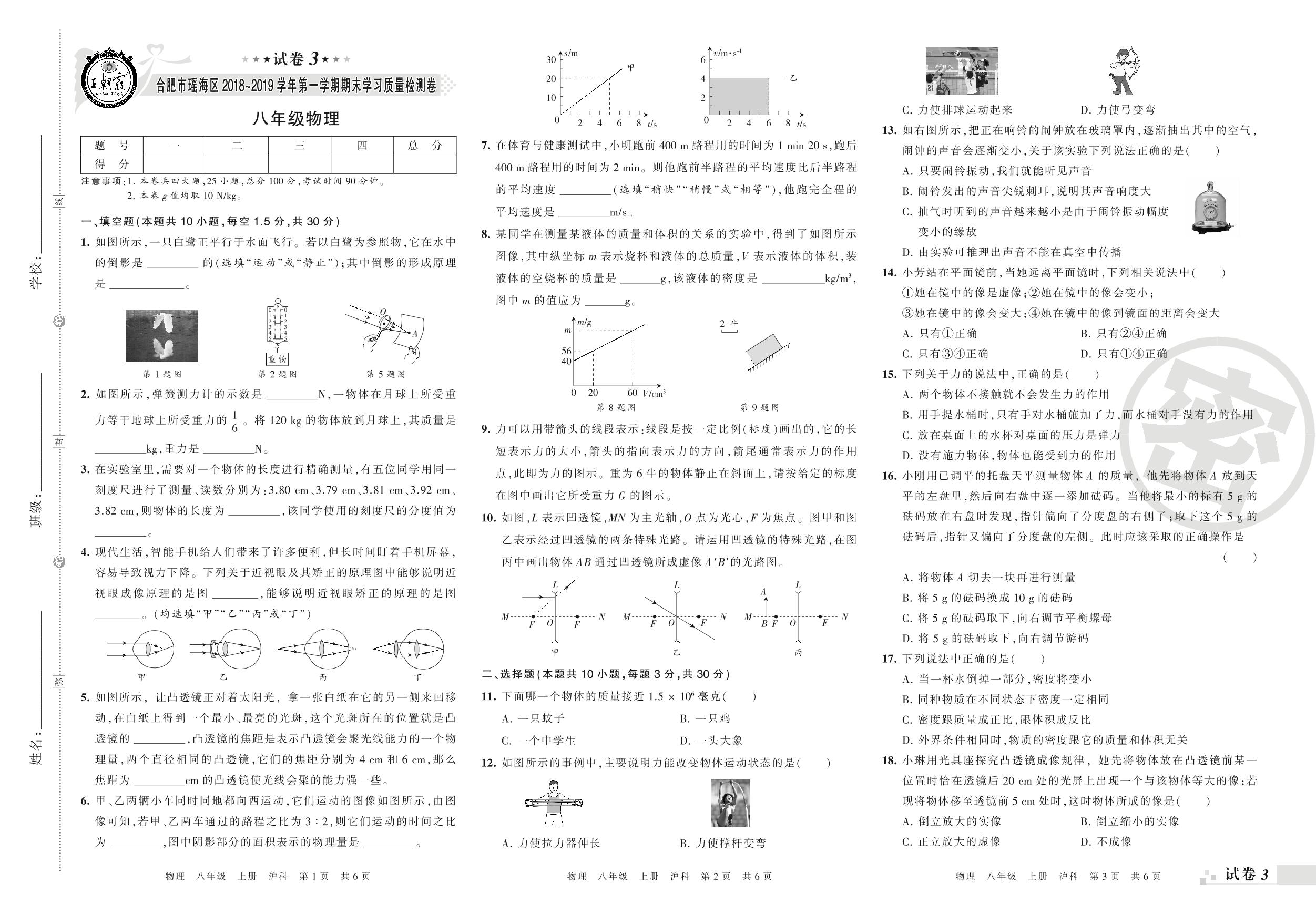 2018-2019学年第一学期合肥市瑶海区八年级物理试卷(沪科版)【3】