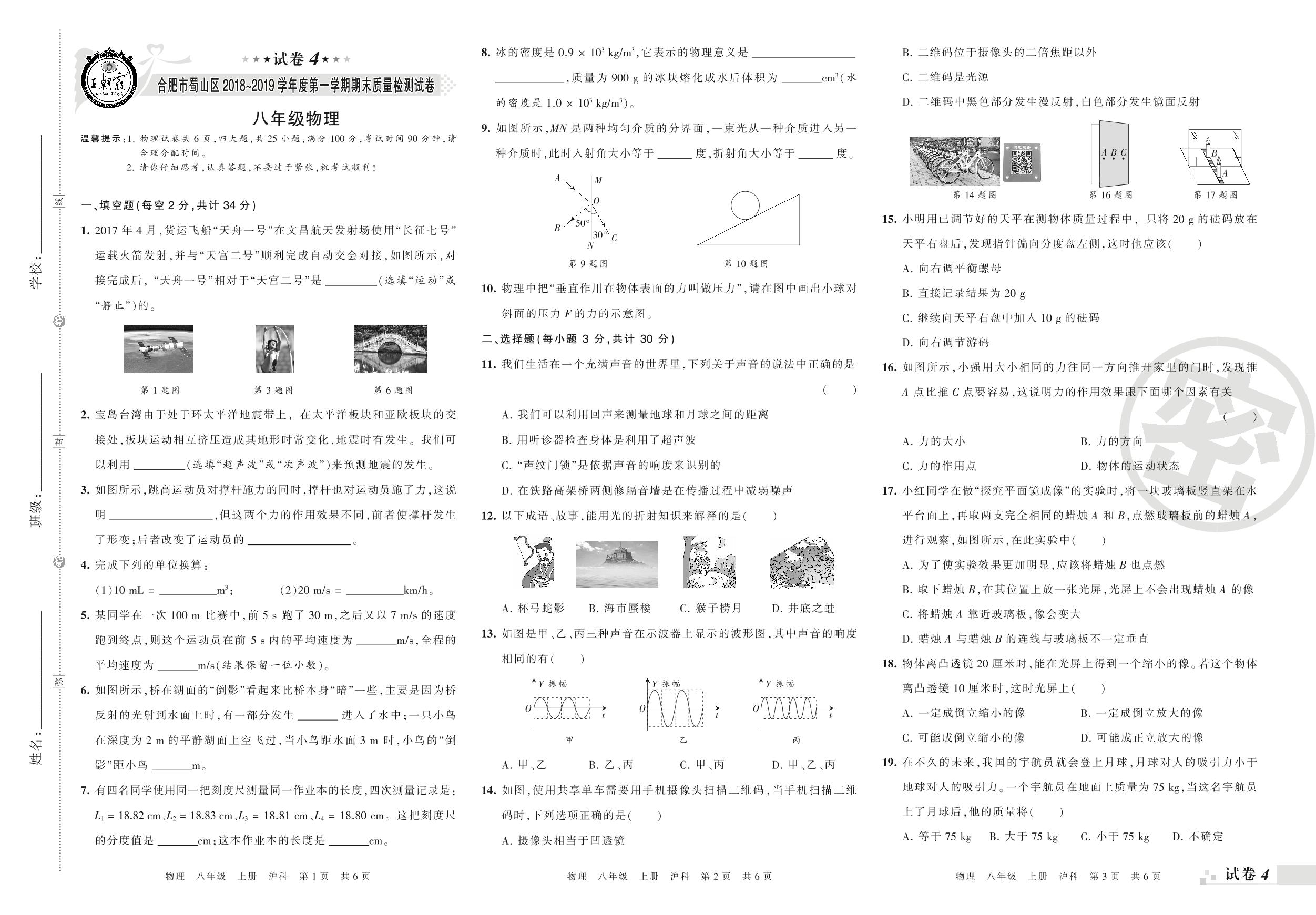 2018-2019学年第一学期合肥市蜀山区八年级物理试卷(沪科版)【4】