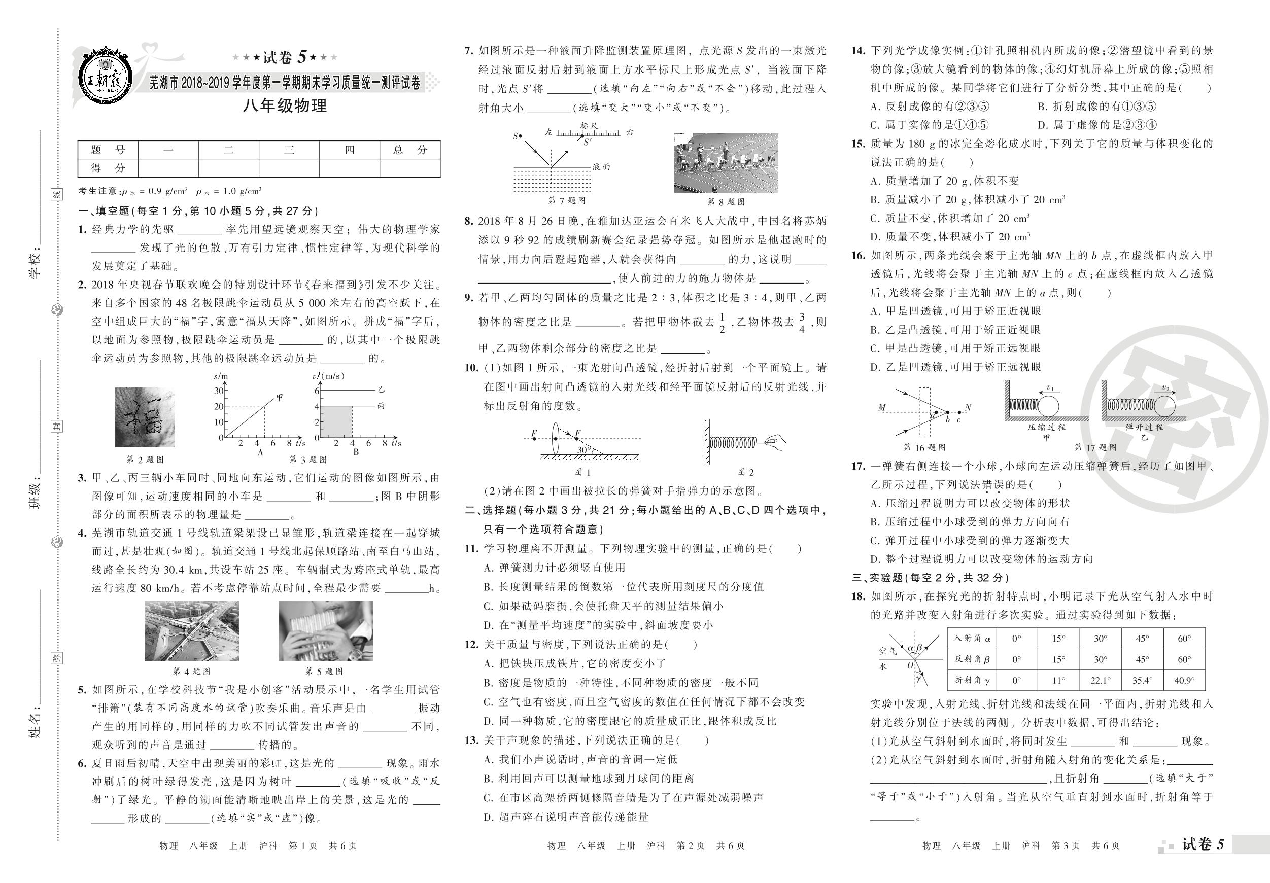 2018-2019学年第一学期芜湖市八年级物理试卷(沪科版)【5】
