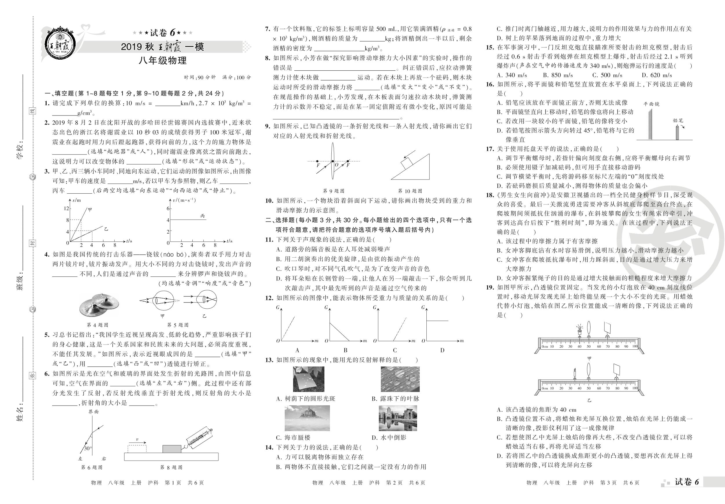 2019-2020学年第一学期王朝霞期末模拟卷八年级物理(沪科版)_R210810174505【6】
